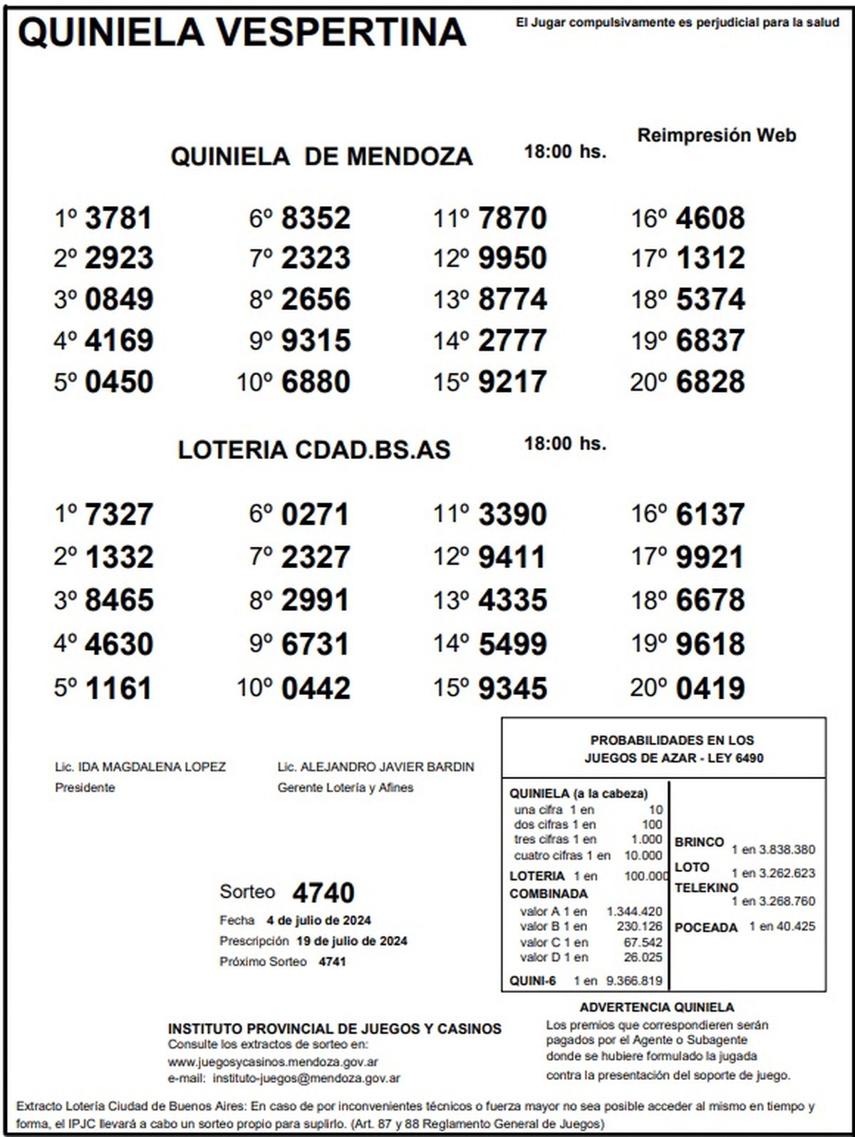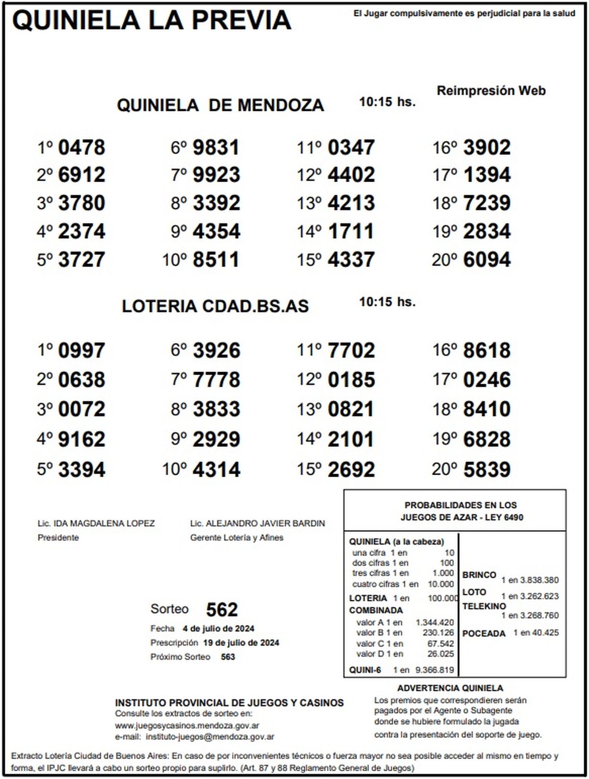 Resultados Quiniela de Mendoza: La Previa del 4 de julio 2024