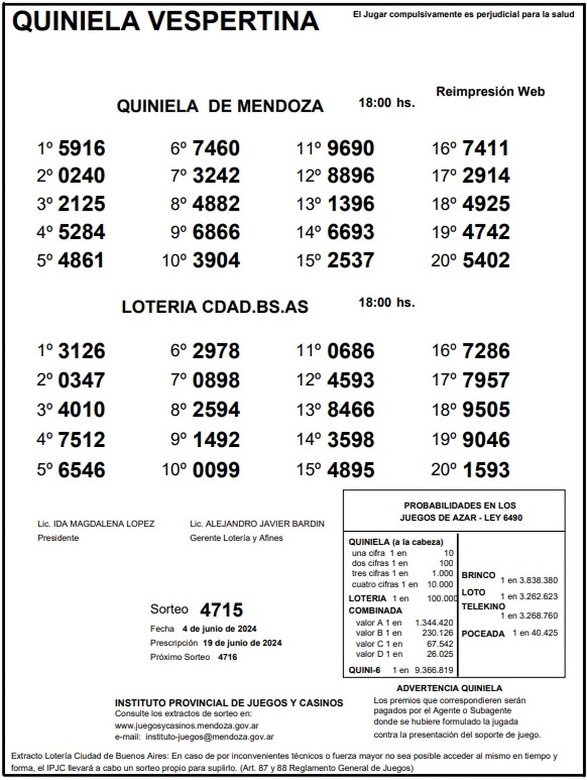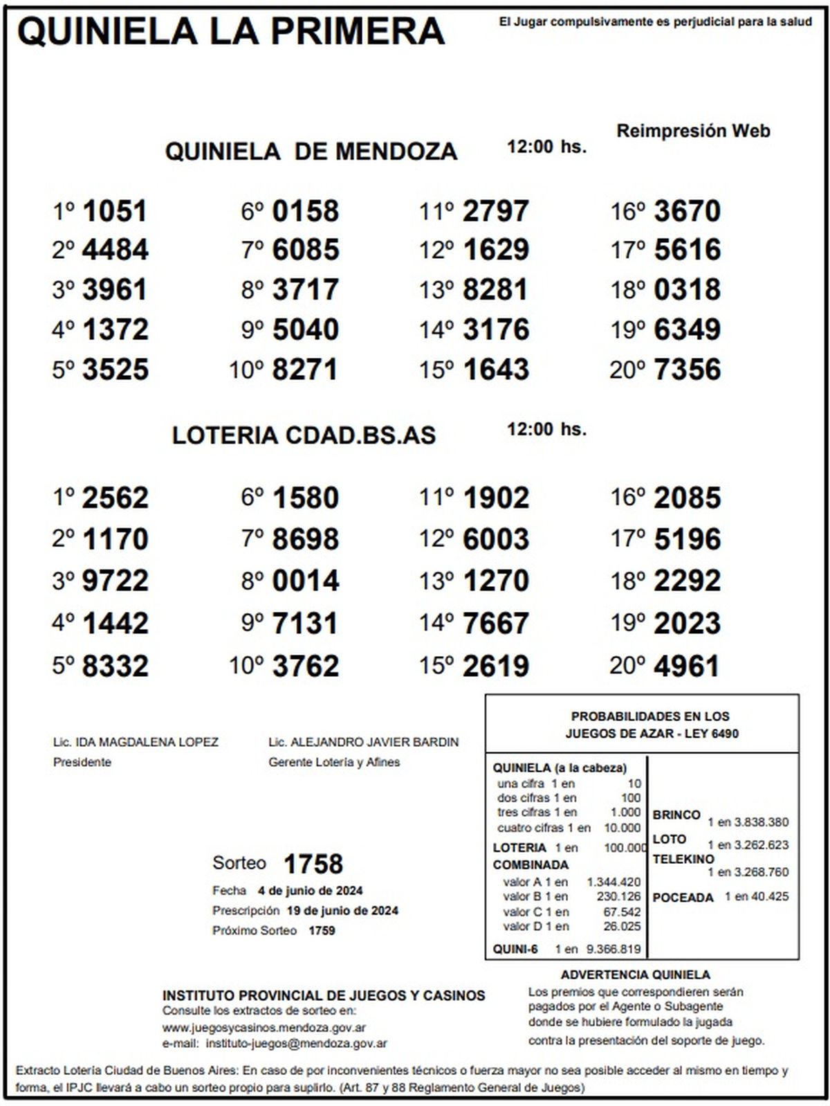 Quiniela de Mendoza: resultados de la Nocturna de hoy, 4 de junio