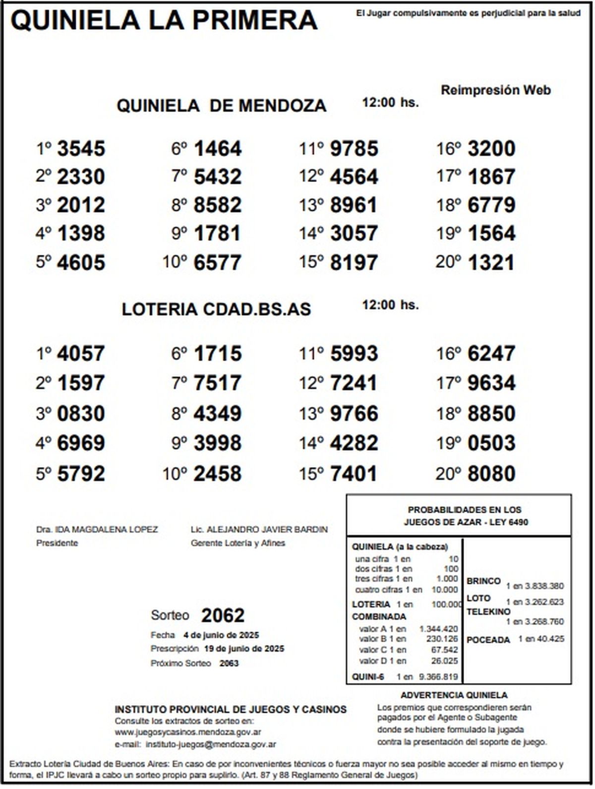 Resultados Quiniela de Mendoza: La Primera del 4 de junio de 2025