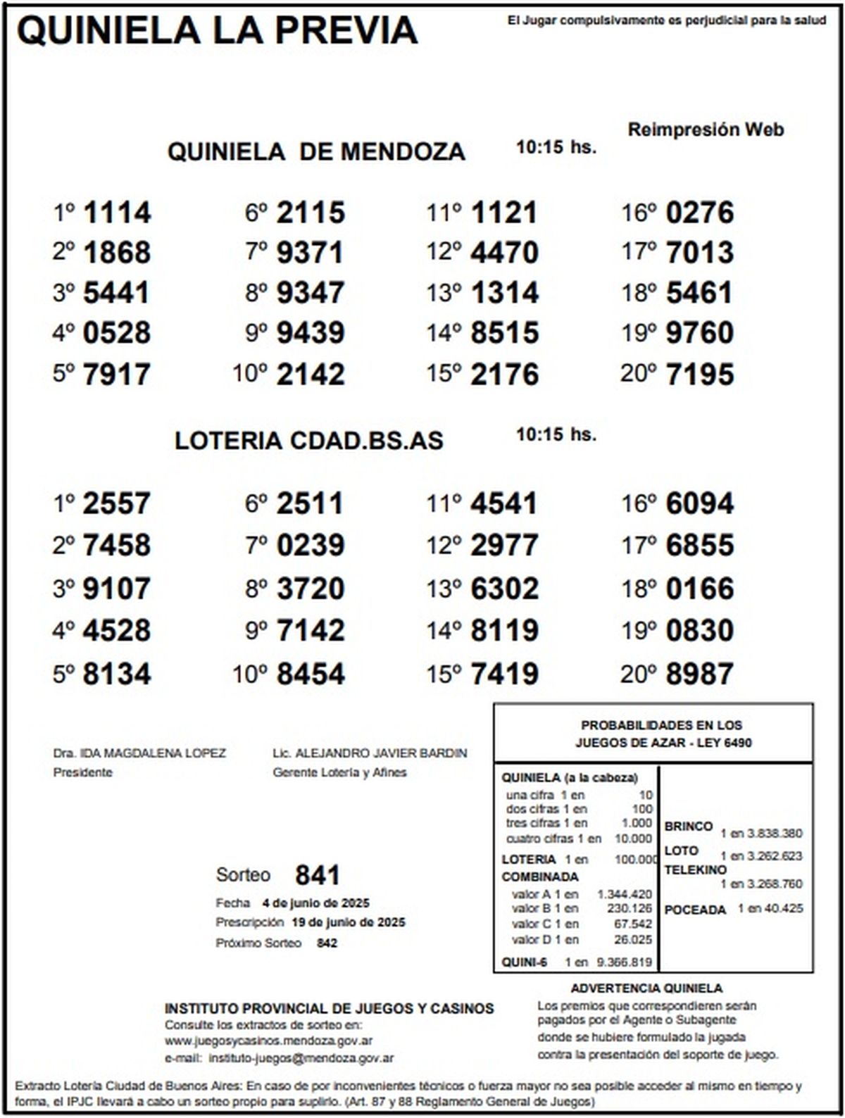 Resultados Quiniela de Mendoza: La Previa del 4 de junio de 2025