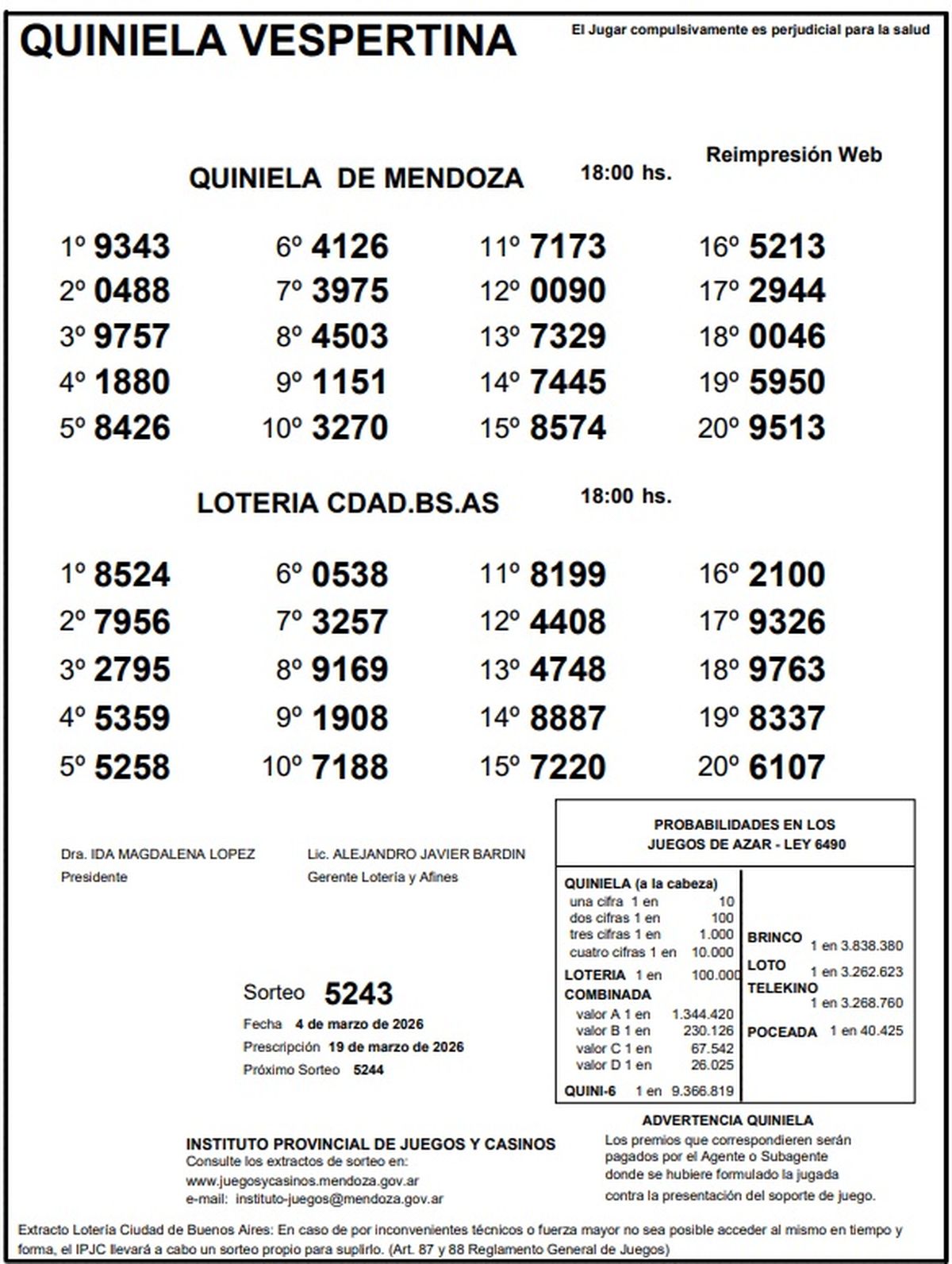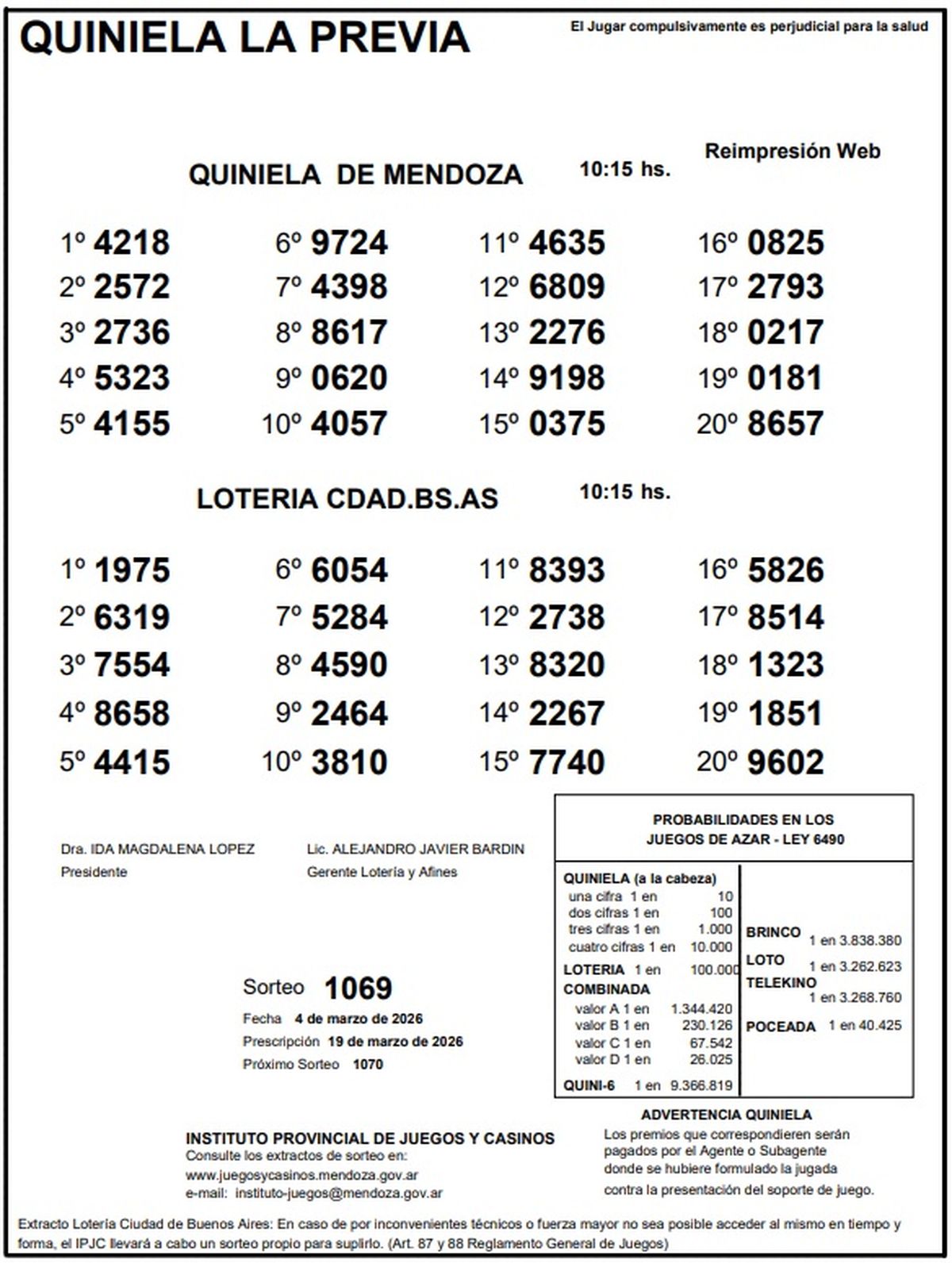 Resultados Quiniela de Mendoza: La Previa del 4 de marzo de 2026