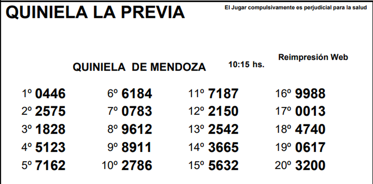 Quiniela de Mendoza: resultados de la Nocturna de hoy, 4 de noviembre