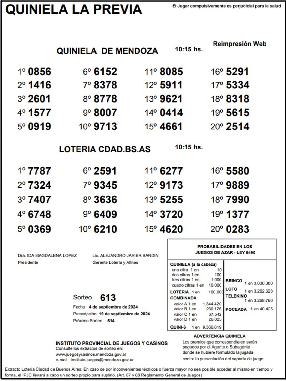 Resultados Quiniela de Mendoza: La Previa del 4 de setiembre 2024