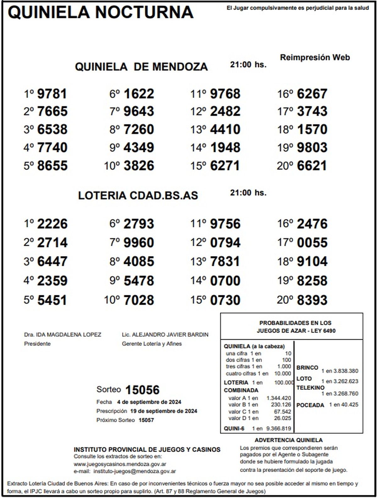 Quiniela de Mendoza: resultados de la Nocturna de hoy, 4 de setiembre