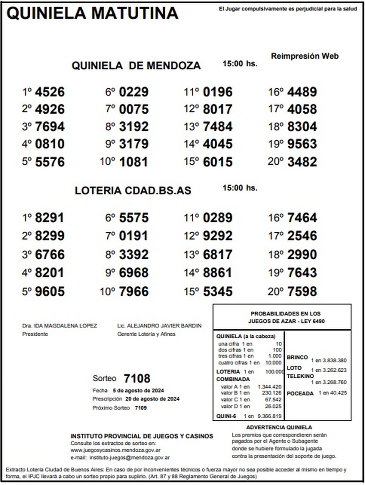 Resultados Quiniela de Mendoza: La Matutina del 5 de agosto 2024