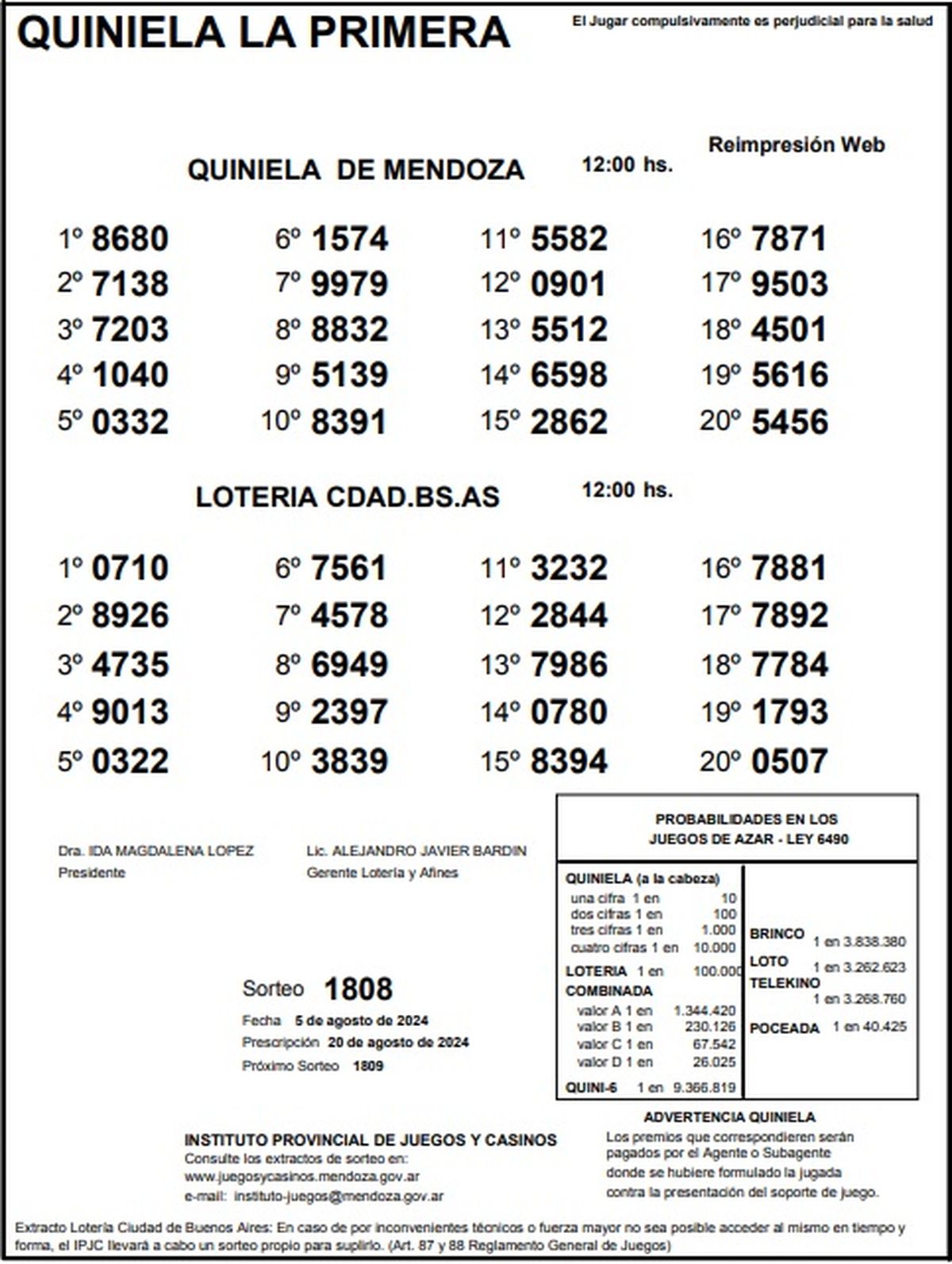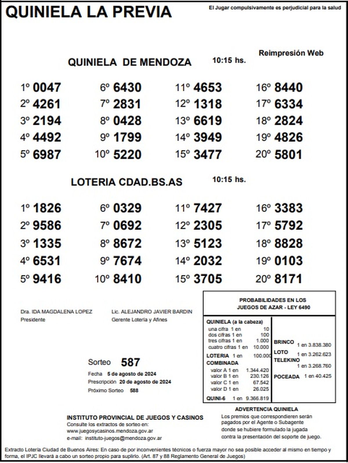 Resultados Quiniela de Mendoza: La Previa del 5 de agosto 2024
