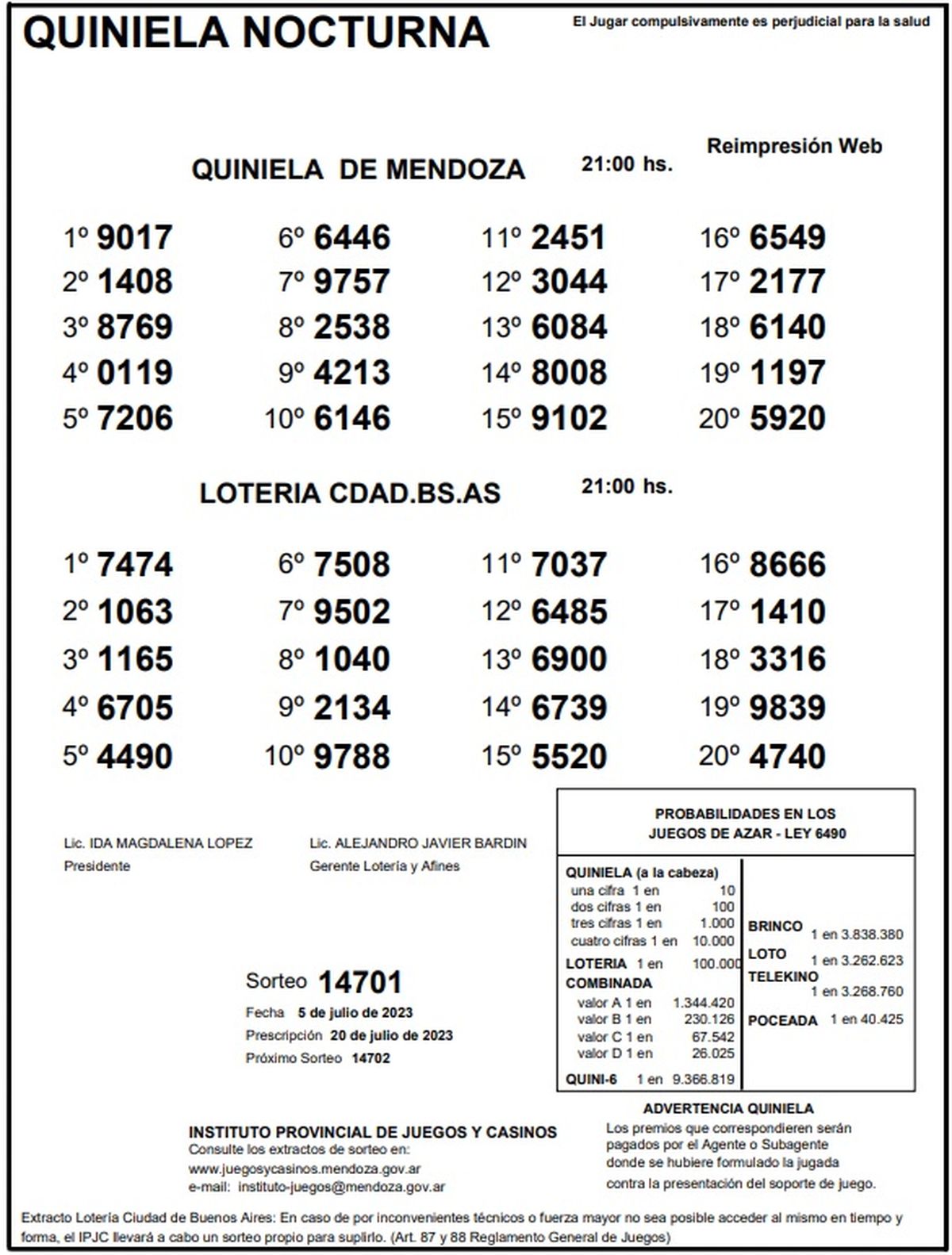 Quiniela de Mendoza: resultados de la Nocturna de hoy, 5 de julio de 2023
