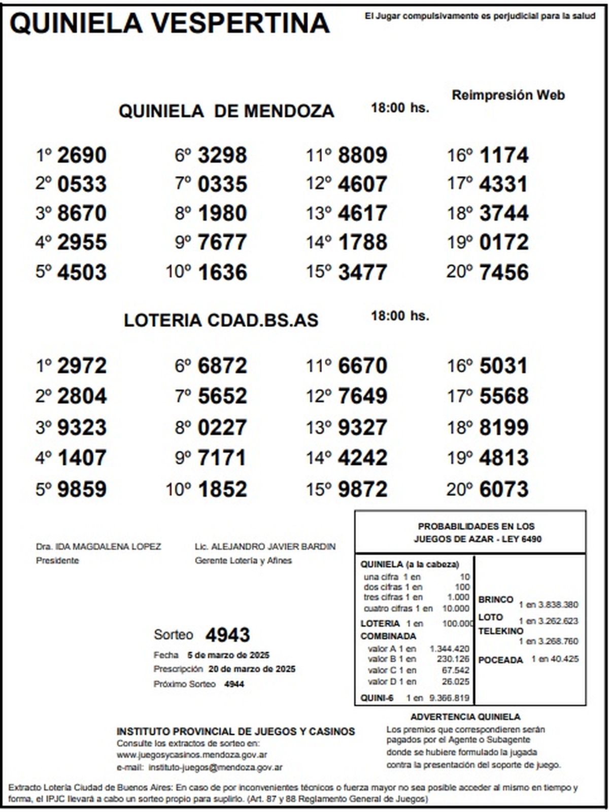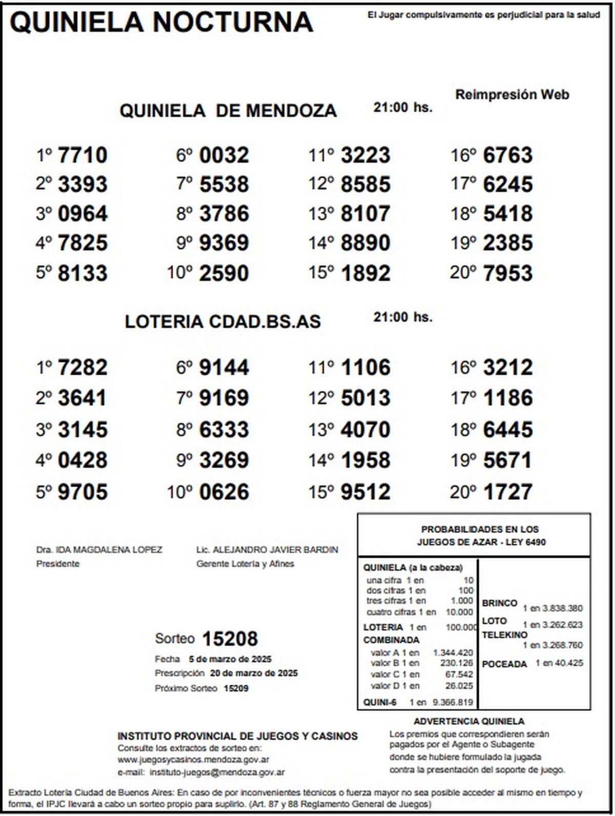 Quiniela de Mendoza: resultados de la Nocturna de hoy, 5 de marzo de 2025