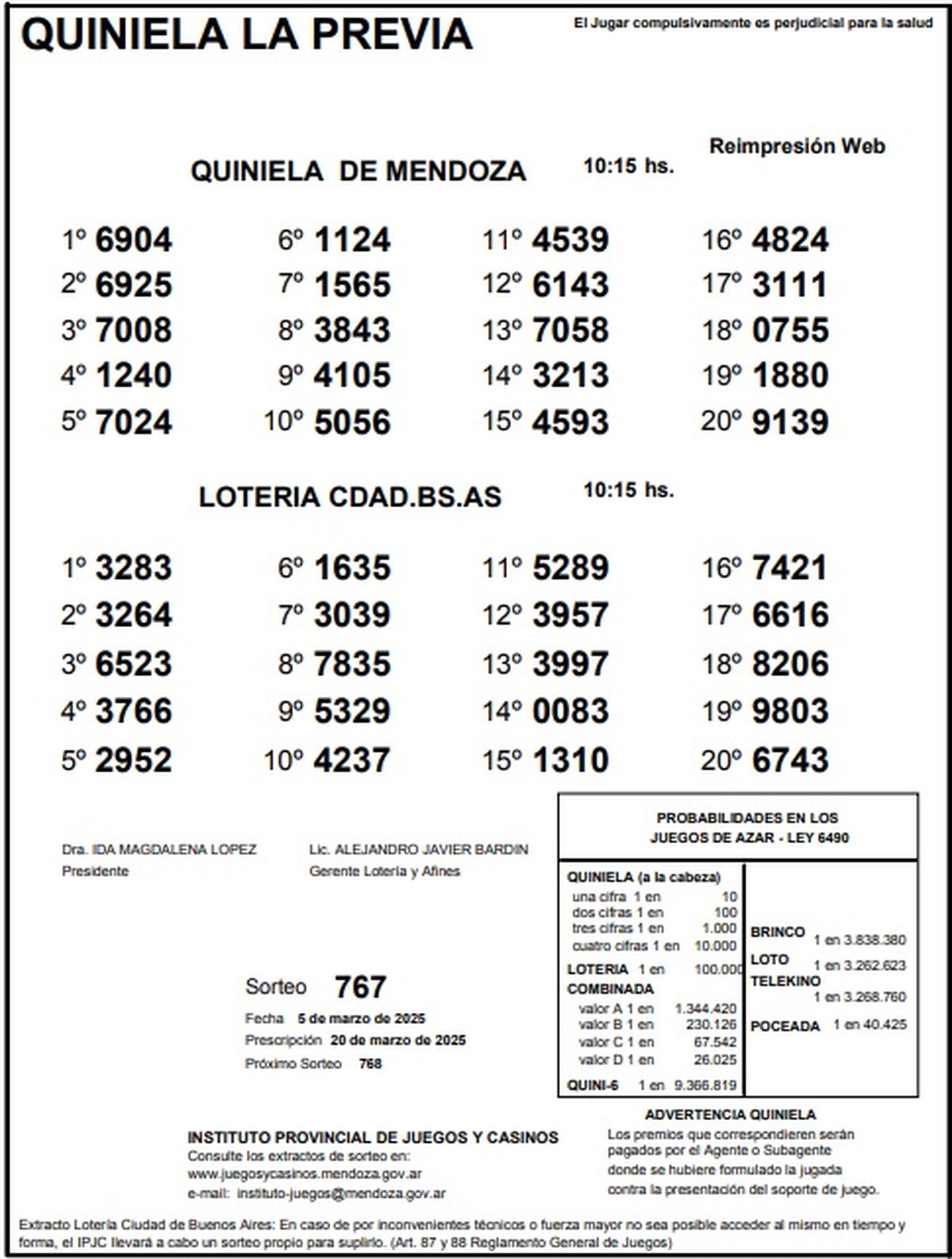 Resultados Quiniela de Mendoza: La Previa del 5 de marzo de 2025