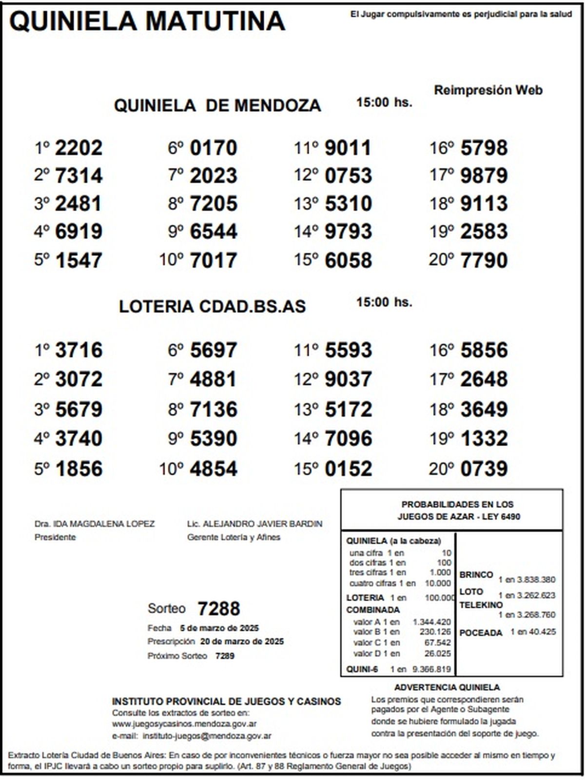 Resultados Quiniela de Mendoza: La Matutina del 5 de marzo de 2025