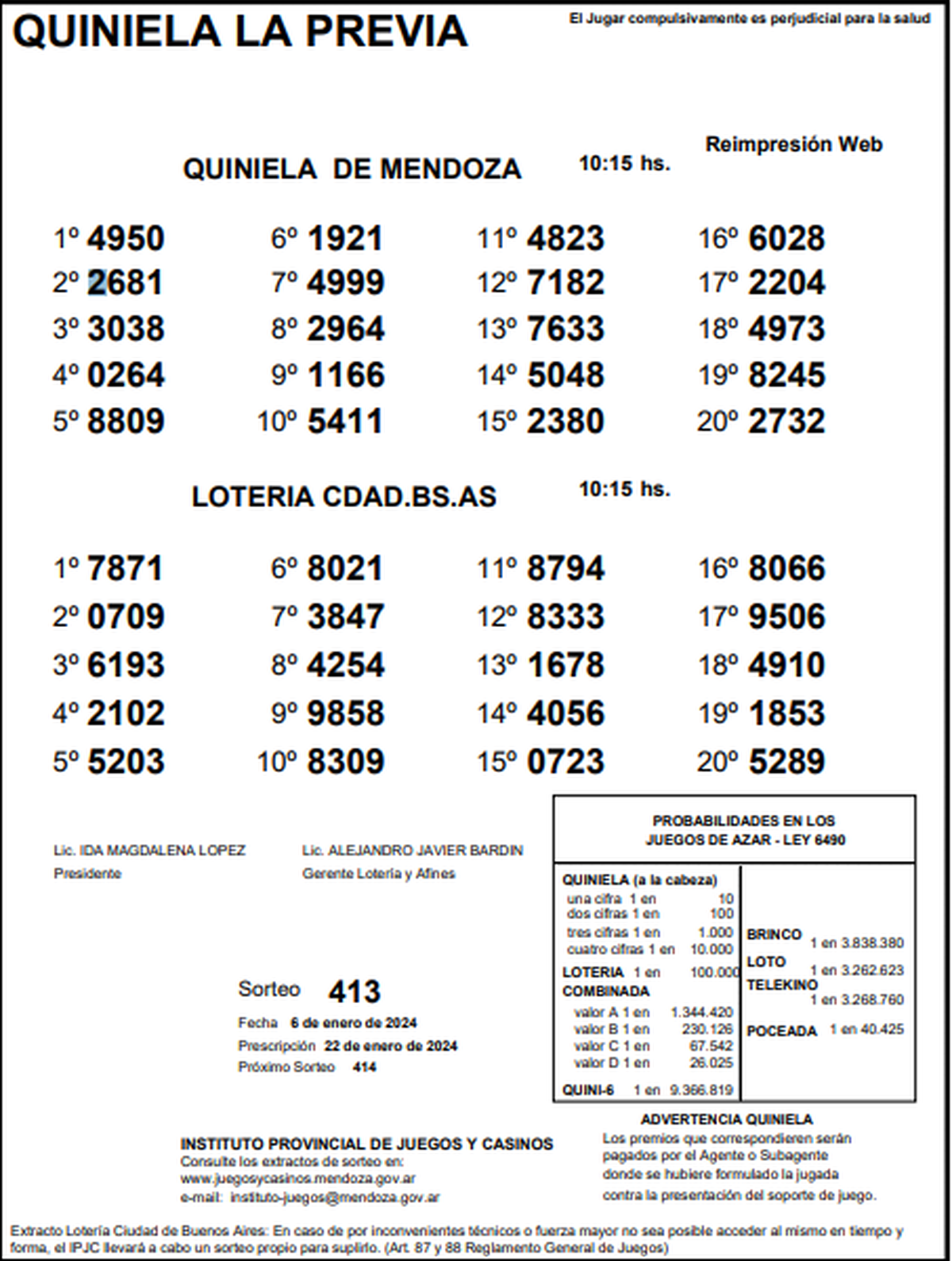Resultados Quiniela de Mendoza: La Previa del 6 de enero 2024