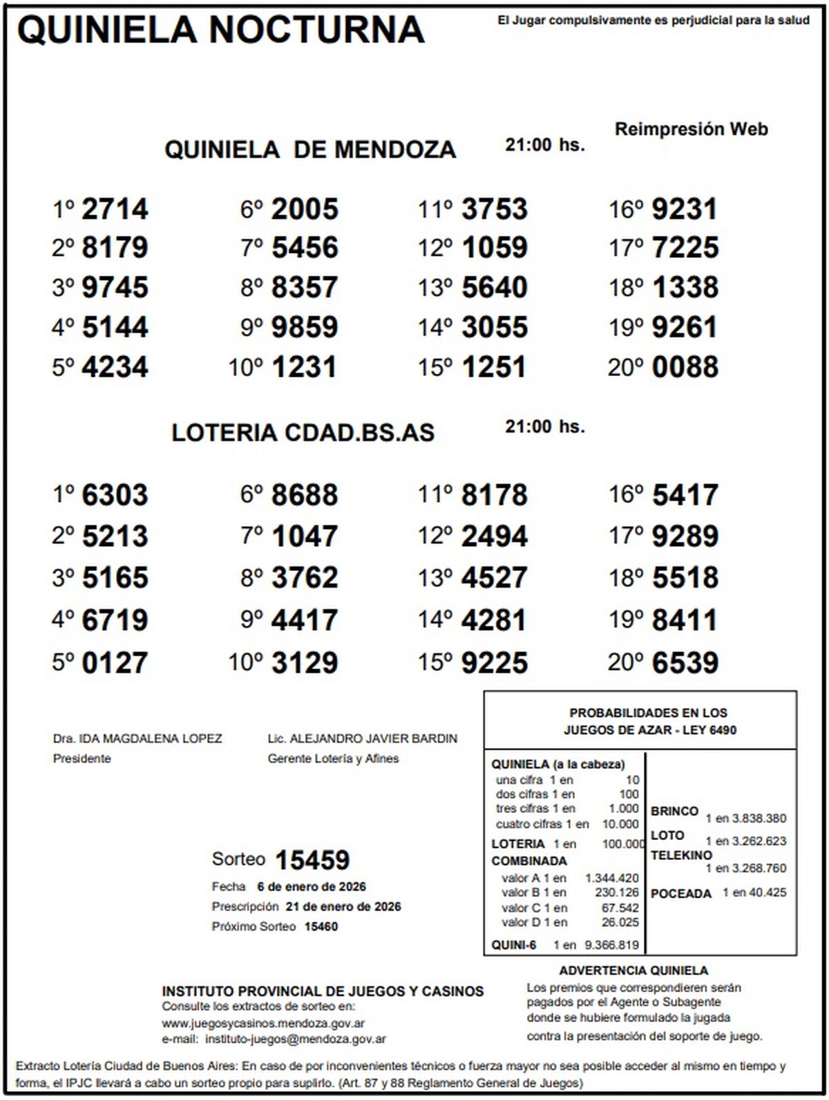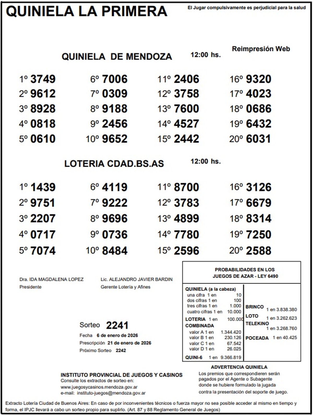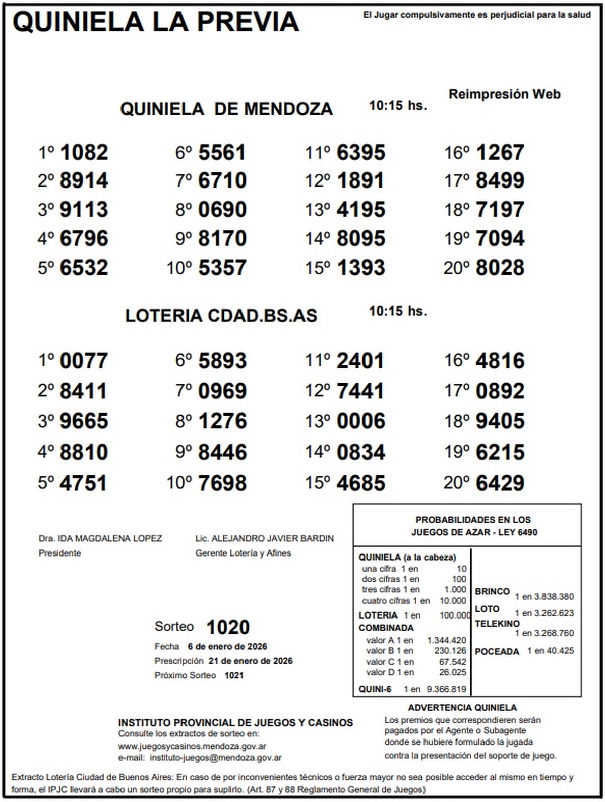 Resultados Quiniela de Mendoza: La Primera del 6 de enero de 2026