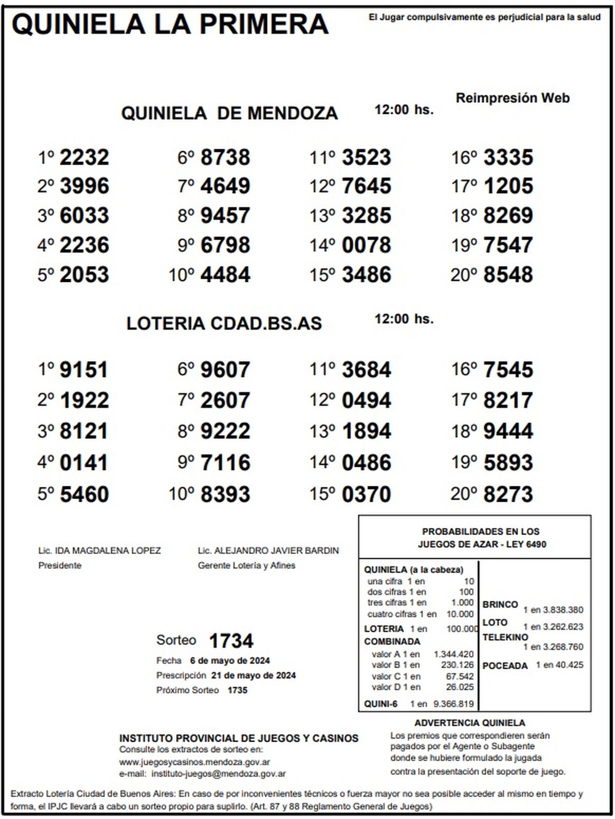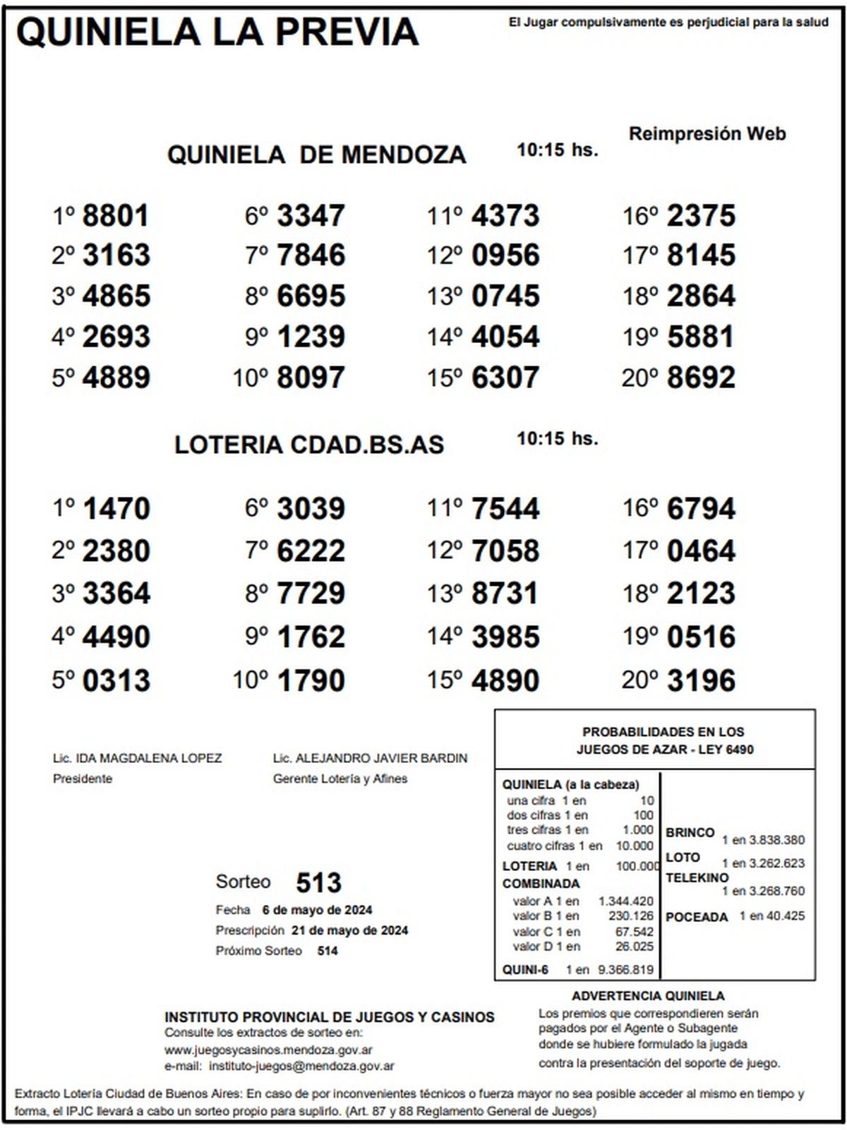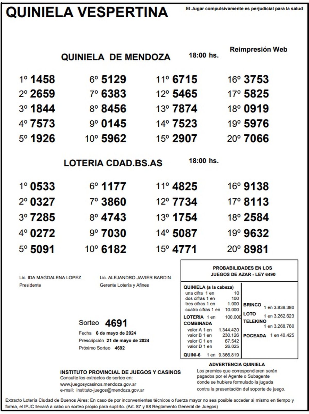 Resultados Quiniela de Mendoza: La Previa del 6 de mayo 2024