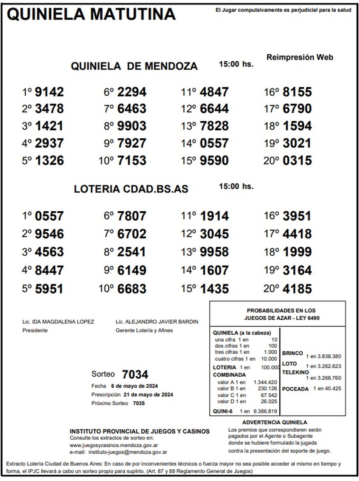 Resultados Quiniela de Mendoza: La Matutina del 6 de mayo 2024