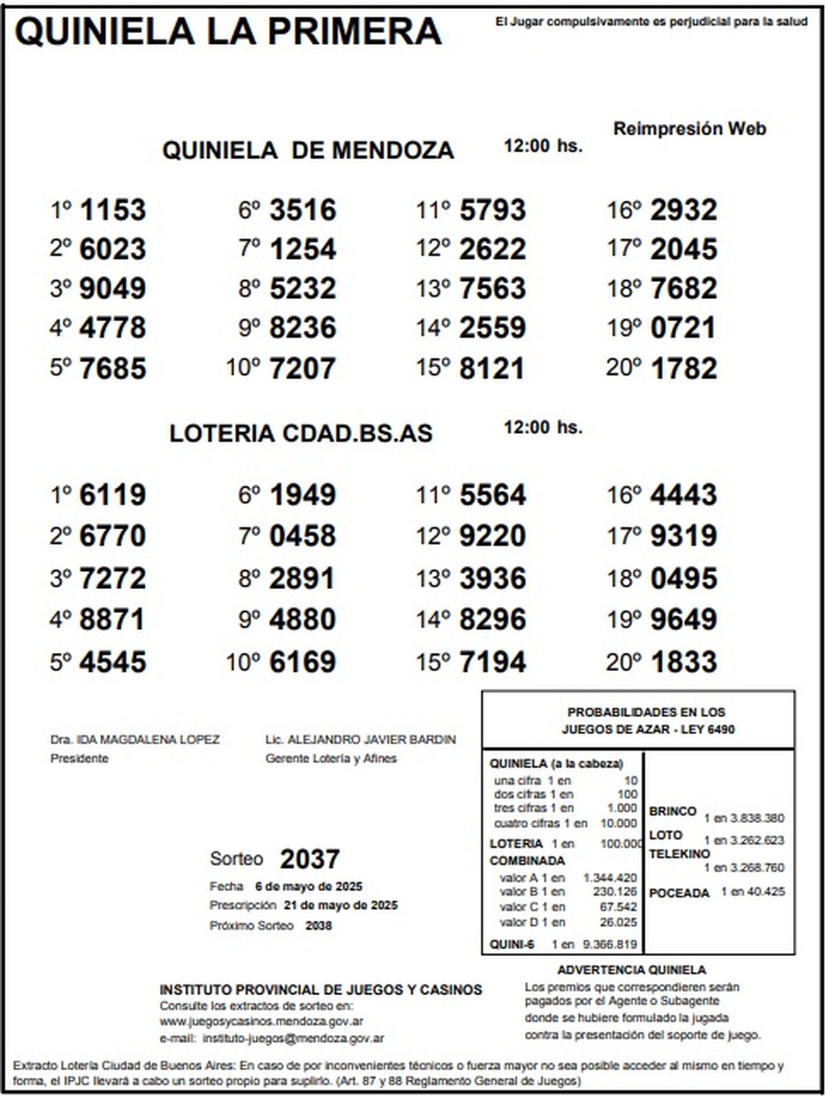 Resultados Quiniela de Mendoza: La Primera del 6 de mayo de 2025