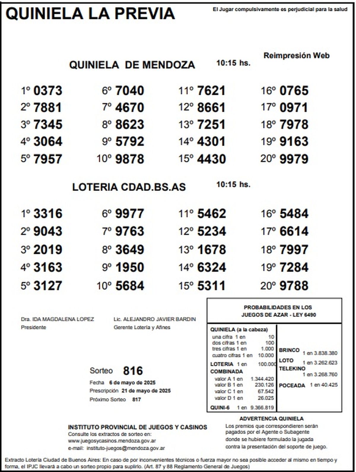 Resultados Quiniela de Mendoza: La Previa del 6 de mayo de 2025