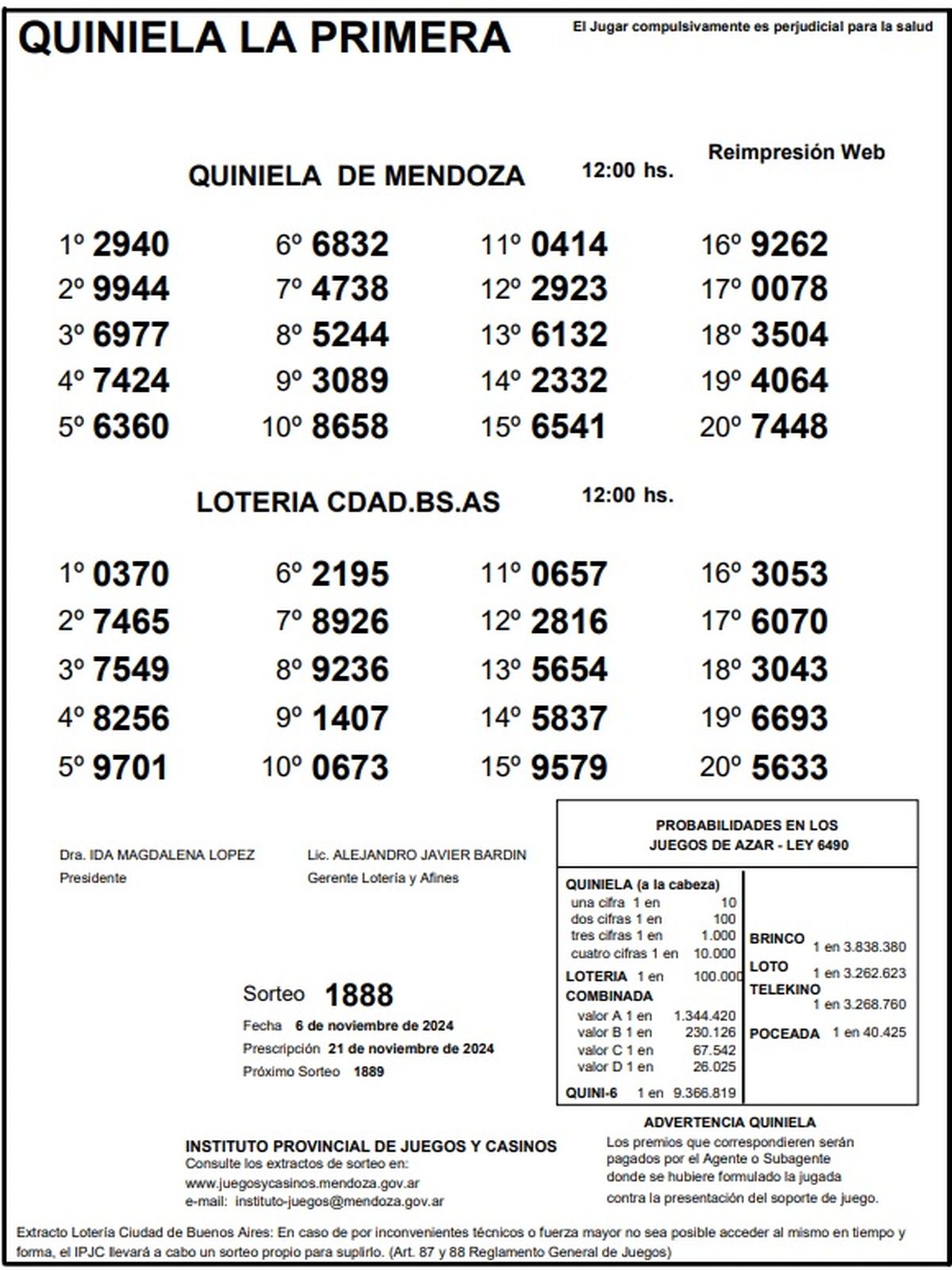 Resultados Quiniela de Mendoza: La Primera del 6 de noviembre de 2024