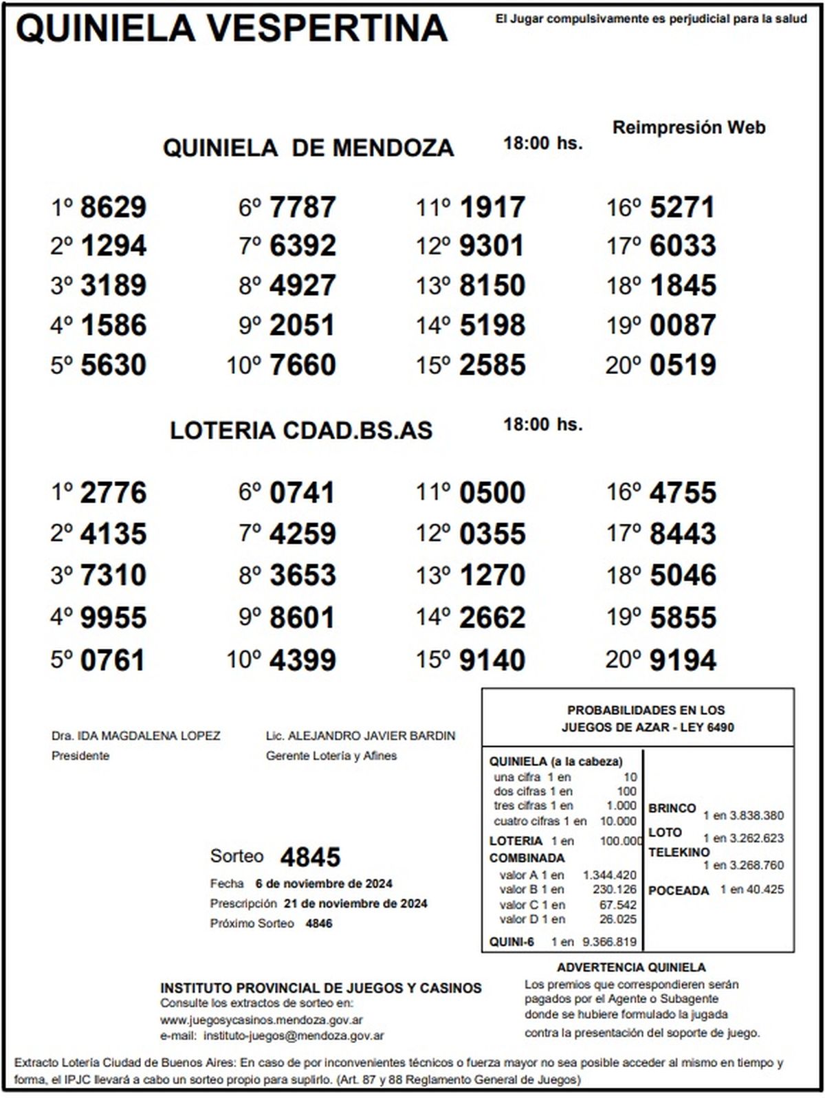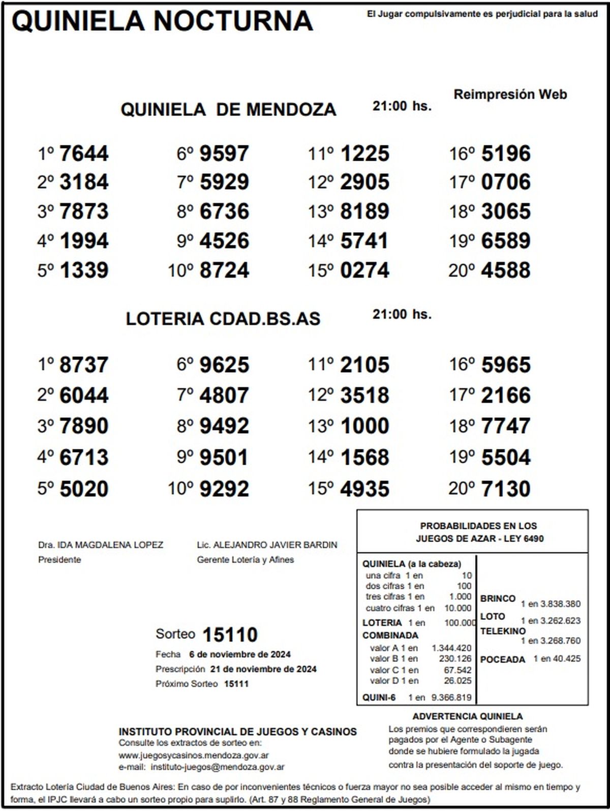 Quiniela de Mendoza: resultados de la Nocturna de hoy, 6 de noviembre de 2024