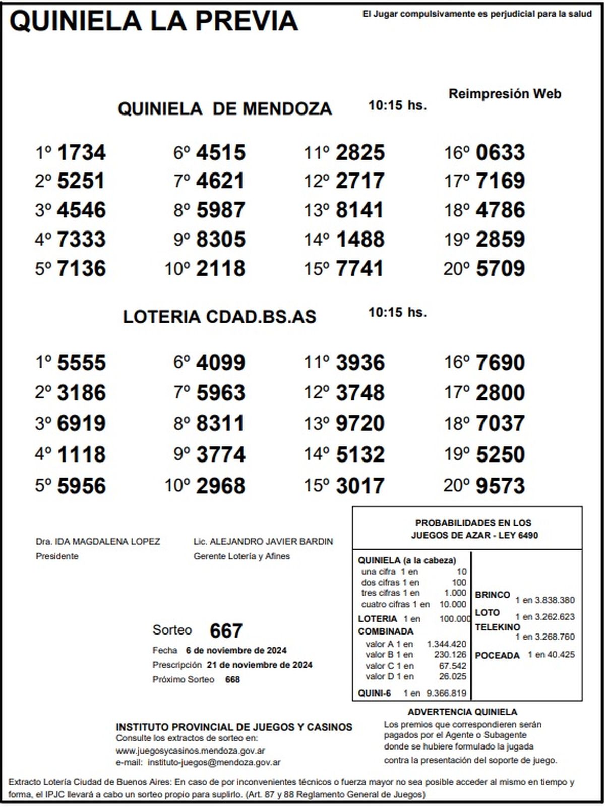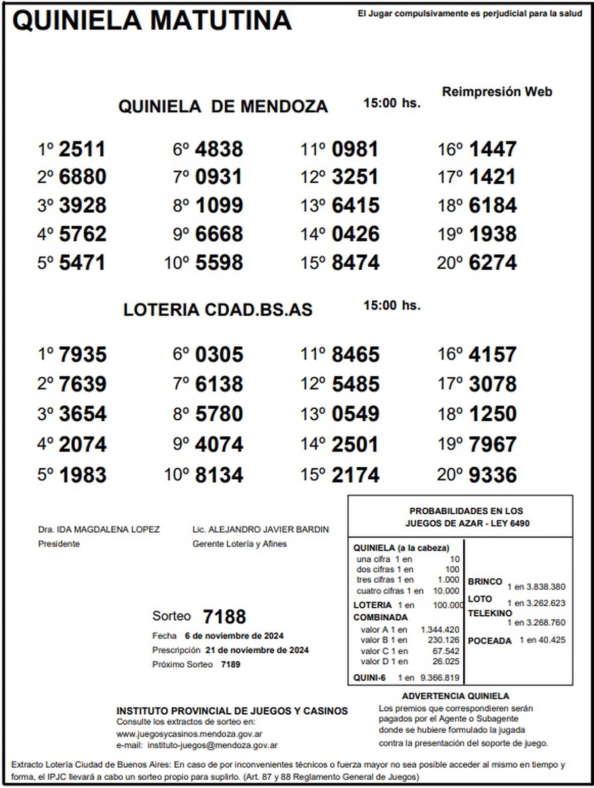 Resultados Quiniela de Mendoza: La Matutina del 6 de noviembre de 2024