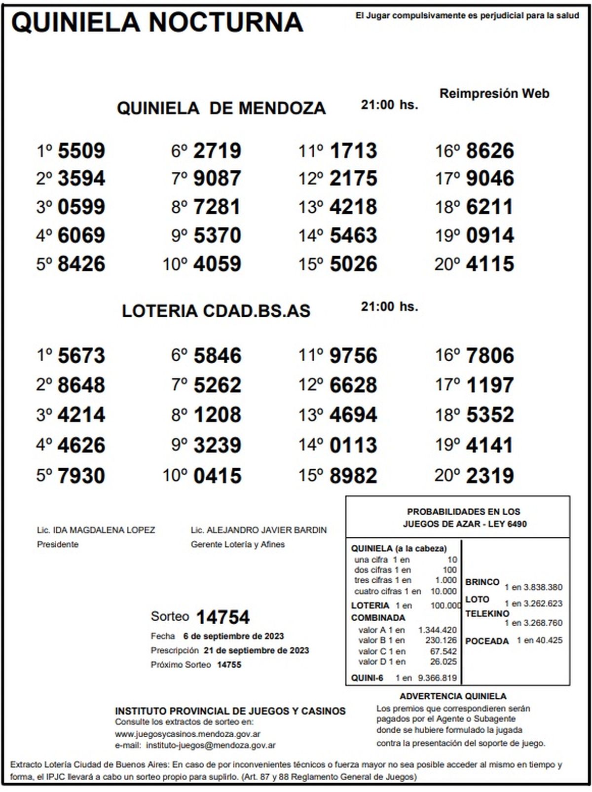 Quiniela de Mendoza: resultados de la Nocturna de hoy, 6 de setiembre de 2023