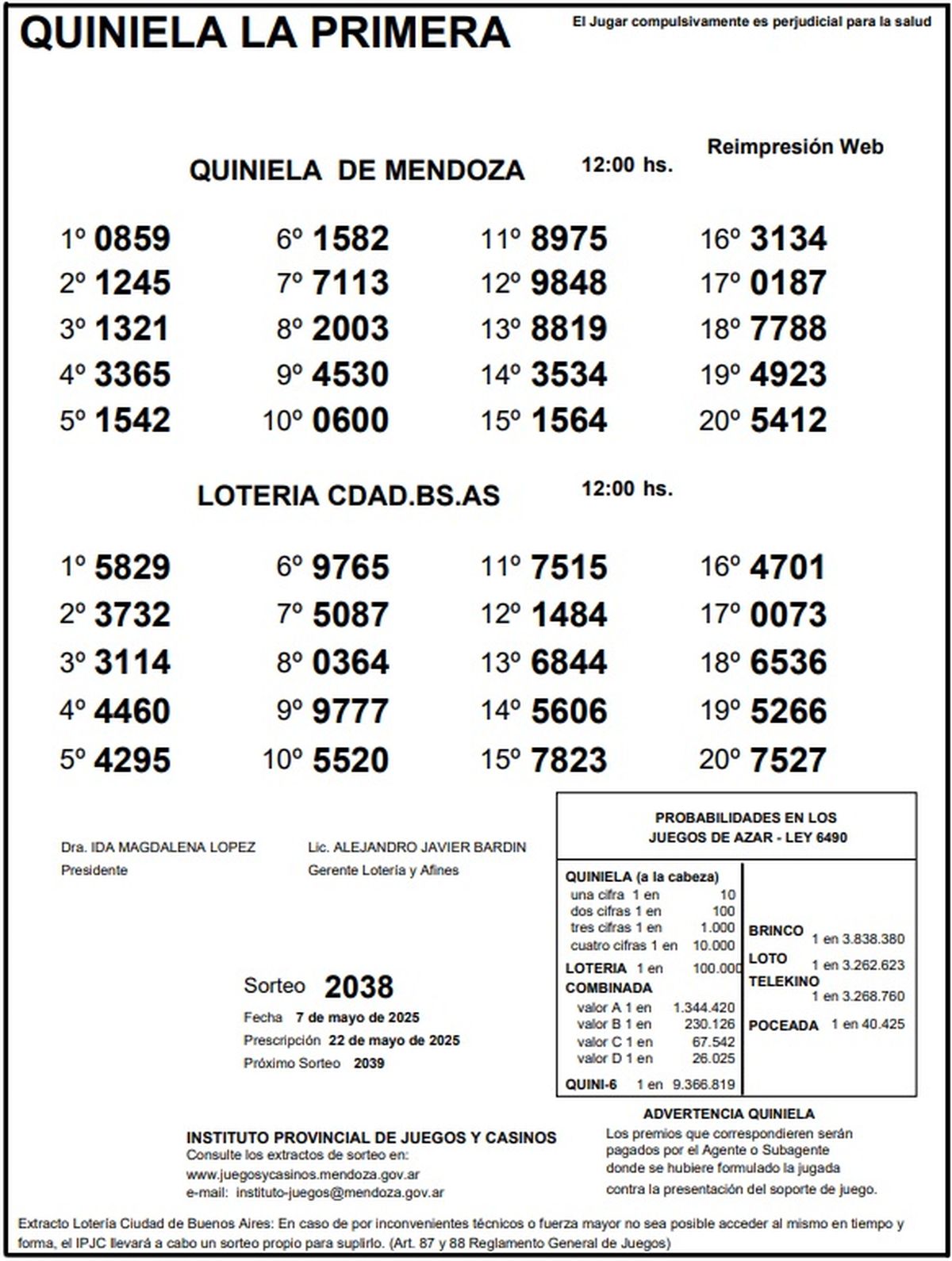Resultados Quiniela de Mendoza: La Primera del 7 de mayo de 2025
