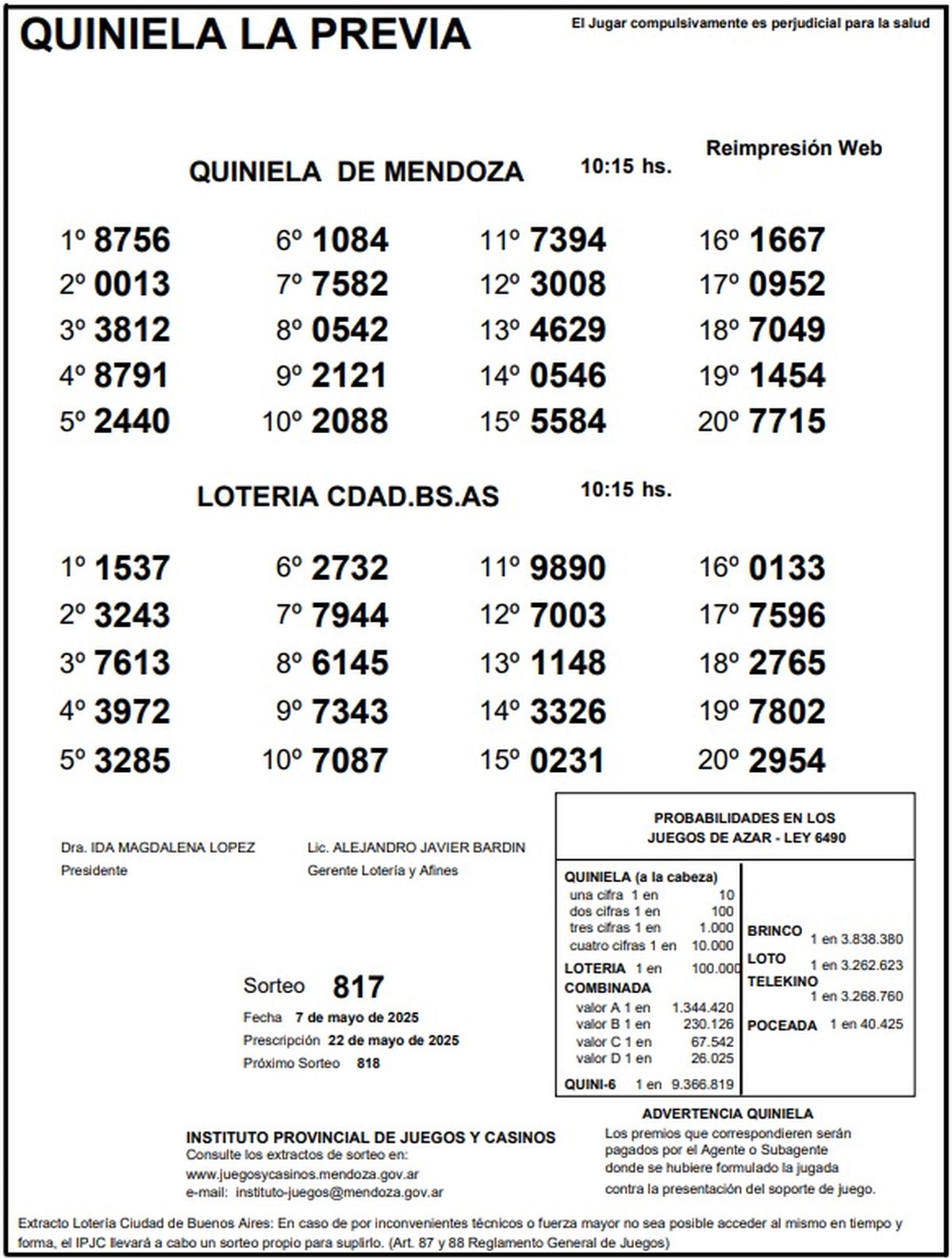 Resultados Quiniela de Mendoza: La Previa del 7 de mayo de 2025