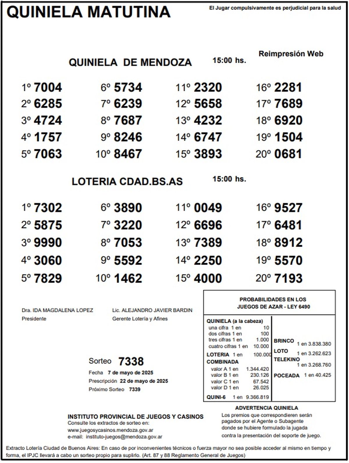 Resultados Quiniela de Mendoza: La Matutina del 7 de mayo de 2025