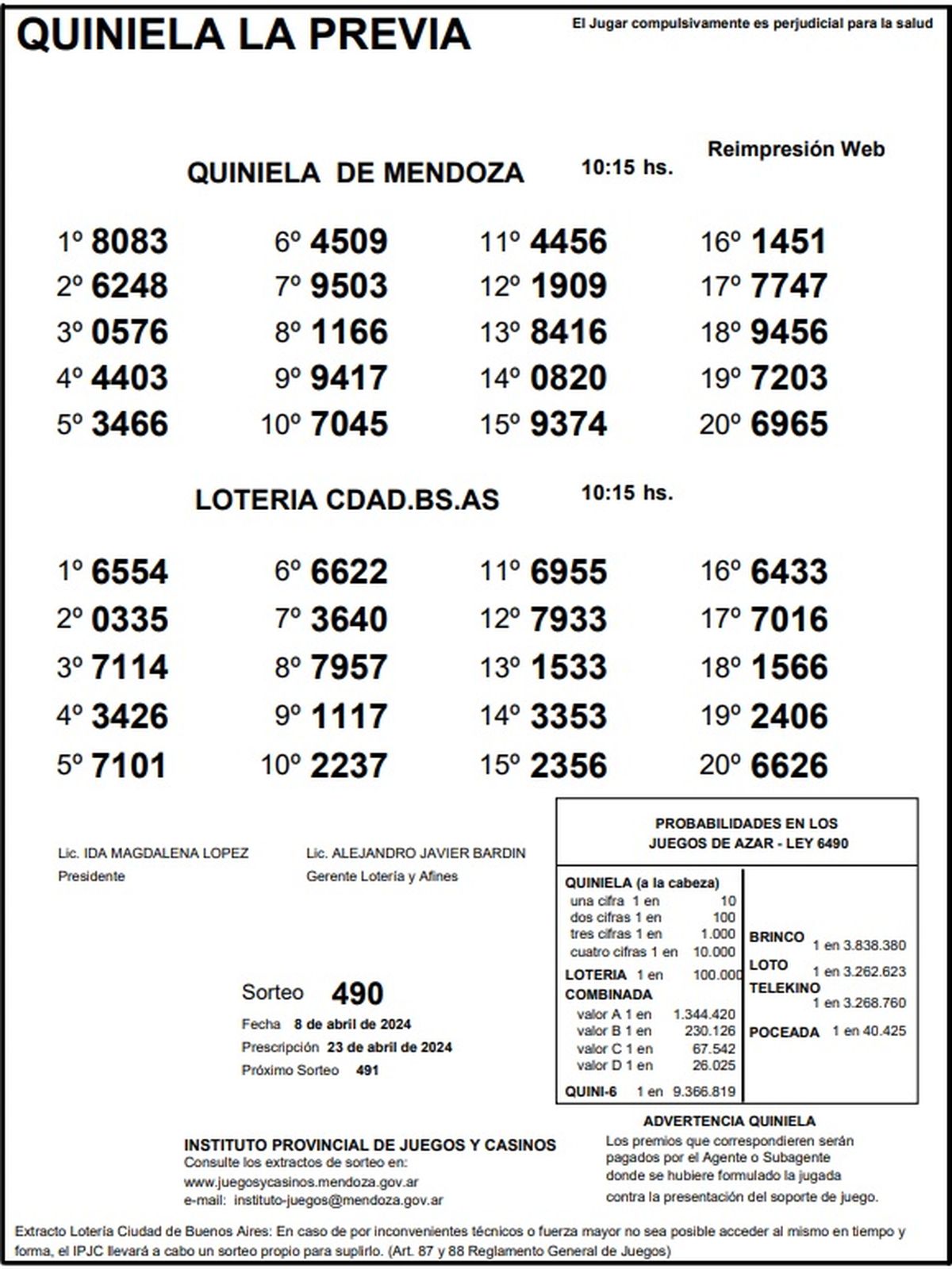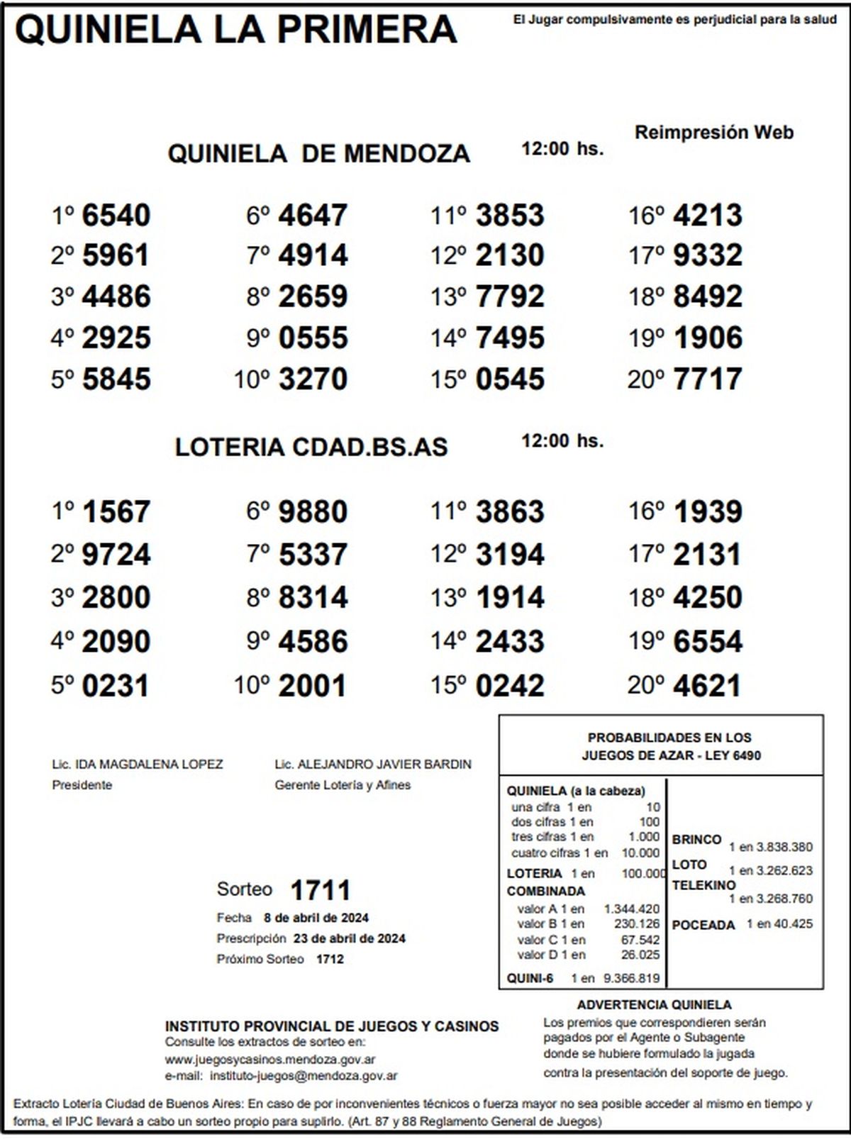 Resultados Quiniela de Mendoza: La Previa del 8 de abril 2024