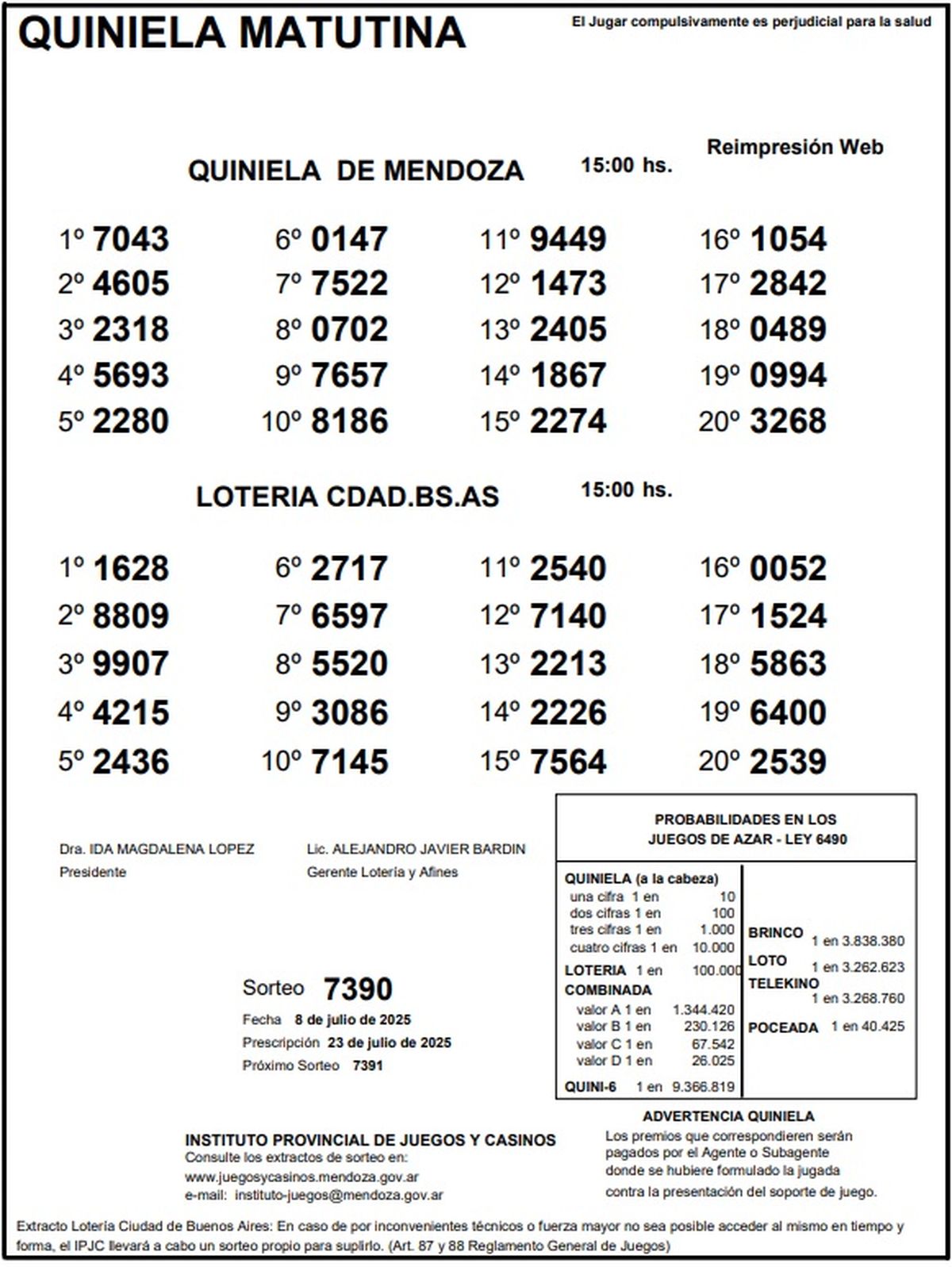 Resultados Quiniela de Mendoza: La Matutina del 8 de julio de 2025