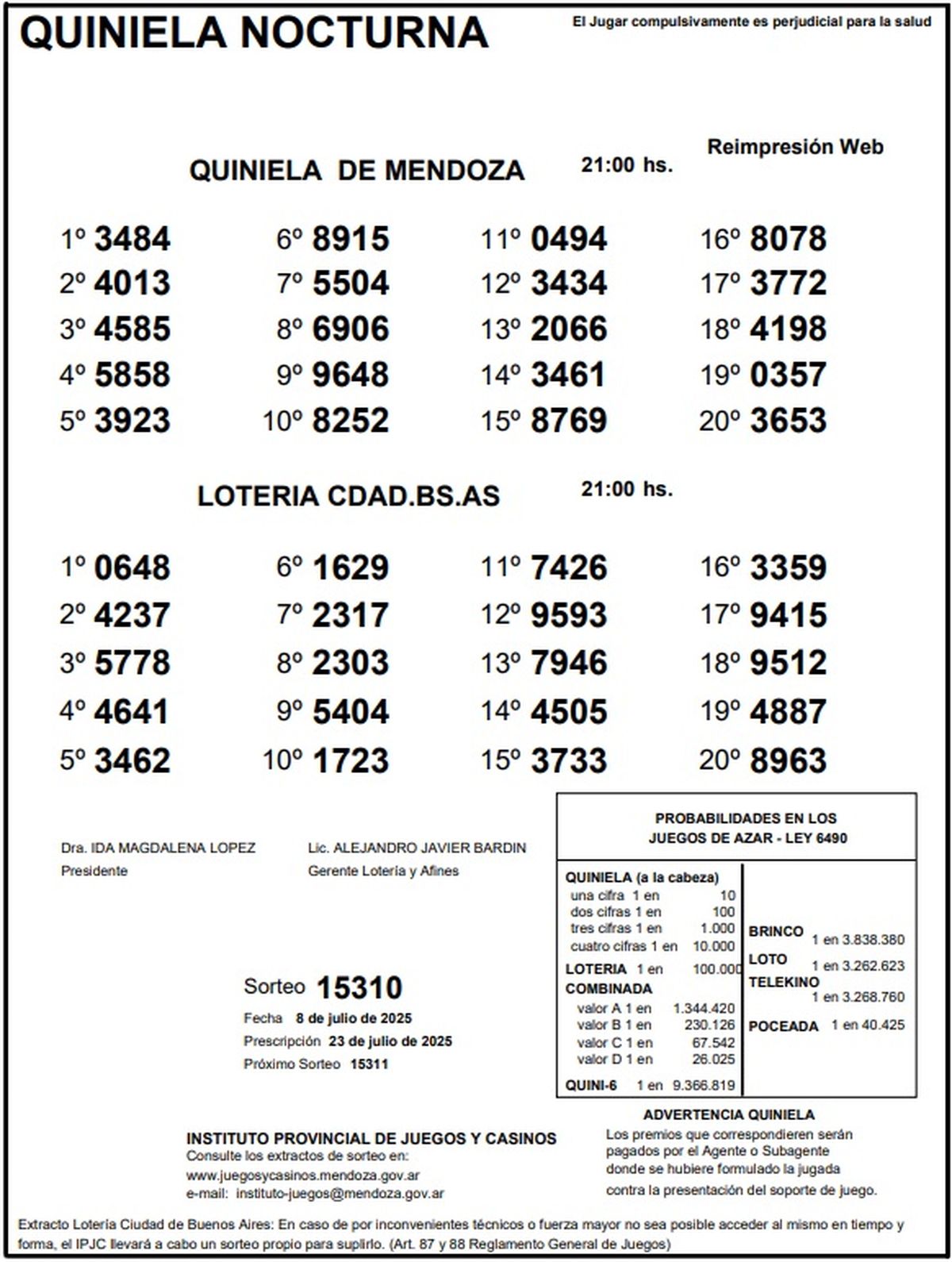 Quiniela de Mendoza: resultados de la Nocturna de hoy, 8 de julio