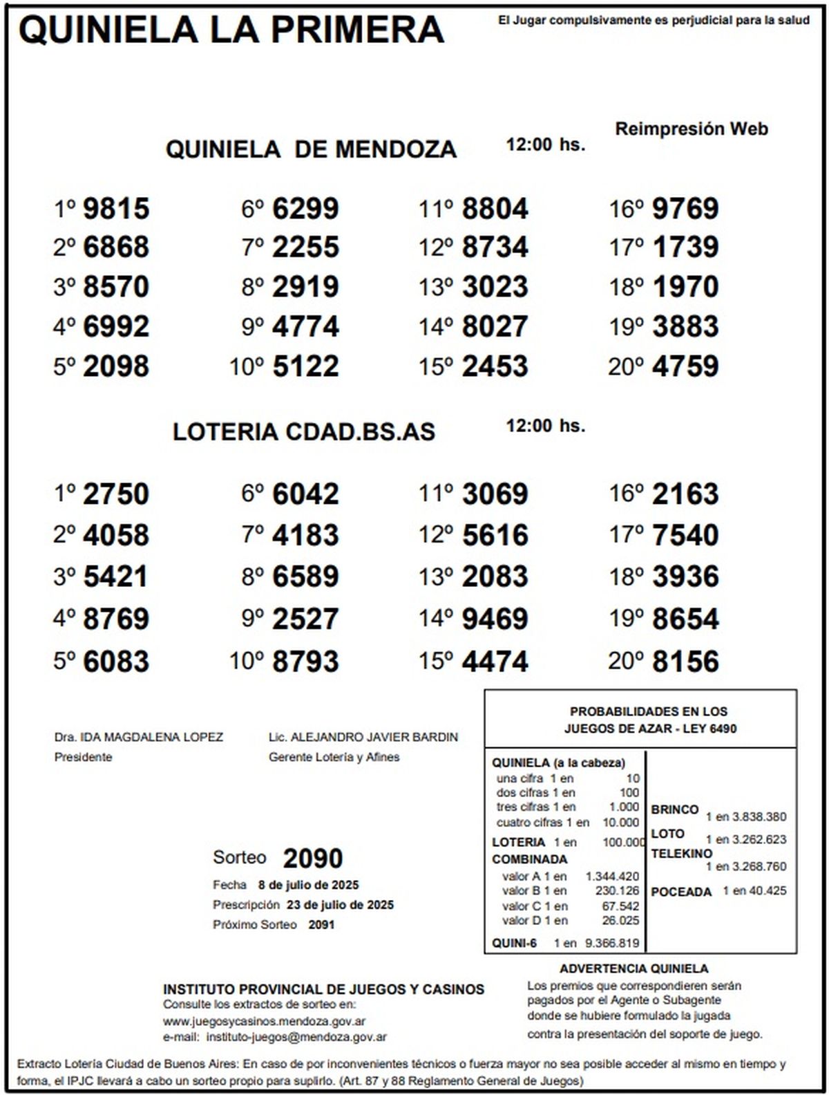 Resultados Quiniela de Mendoza: La Primera del 8 de julio de 2025