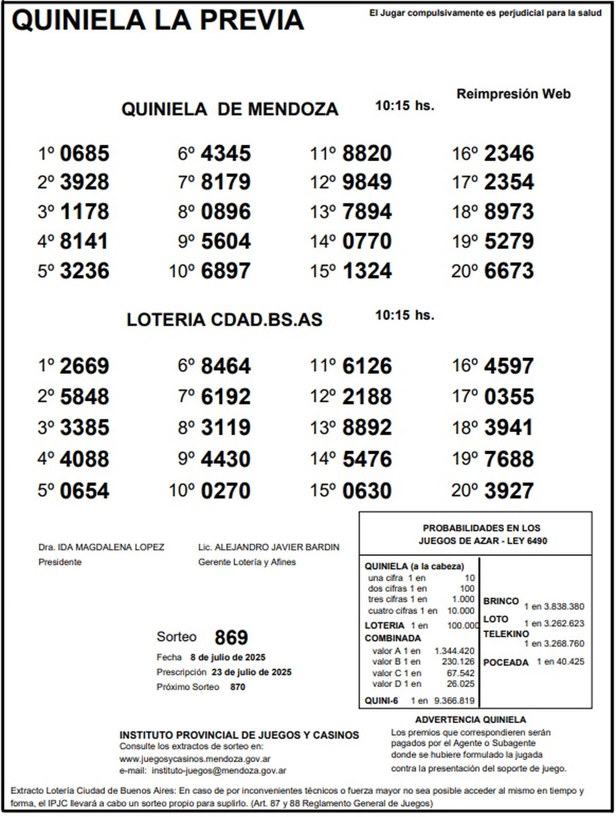 Resultados Quiniela de Mendoza: La Previa del 8 de julio de 2025
