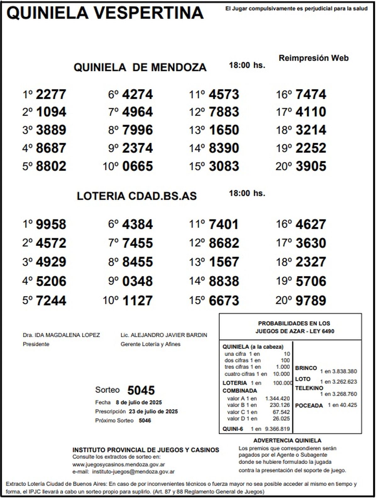 Resultados Quiniela de Mendoza: La Vespertina del 8 de julio de 2025