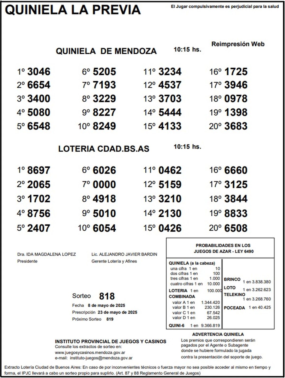 Resultados Quiniela de Mendoza: La Previa del 8 de mayo de 2025
