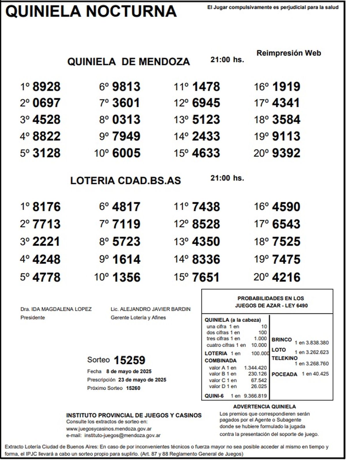 Quiniela de Mendoza: resultados de la Nocturna de hoy, 8 de mayo de 2025
