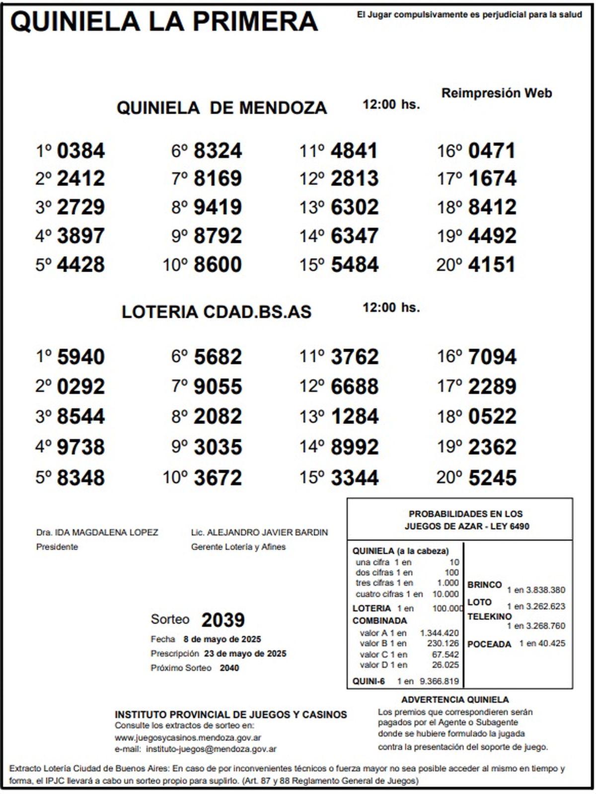 Resultados Quiniela de Mendoza: La Primera del 8 de mayo de 2025