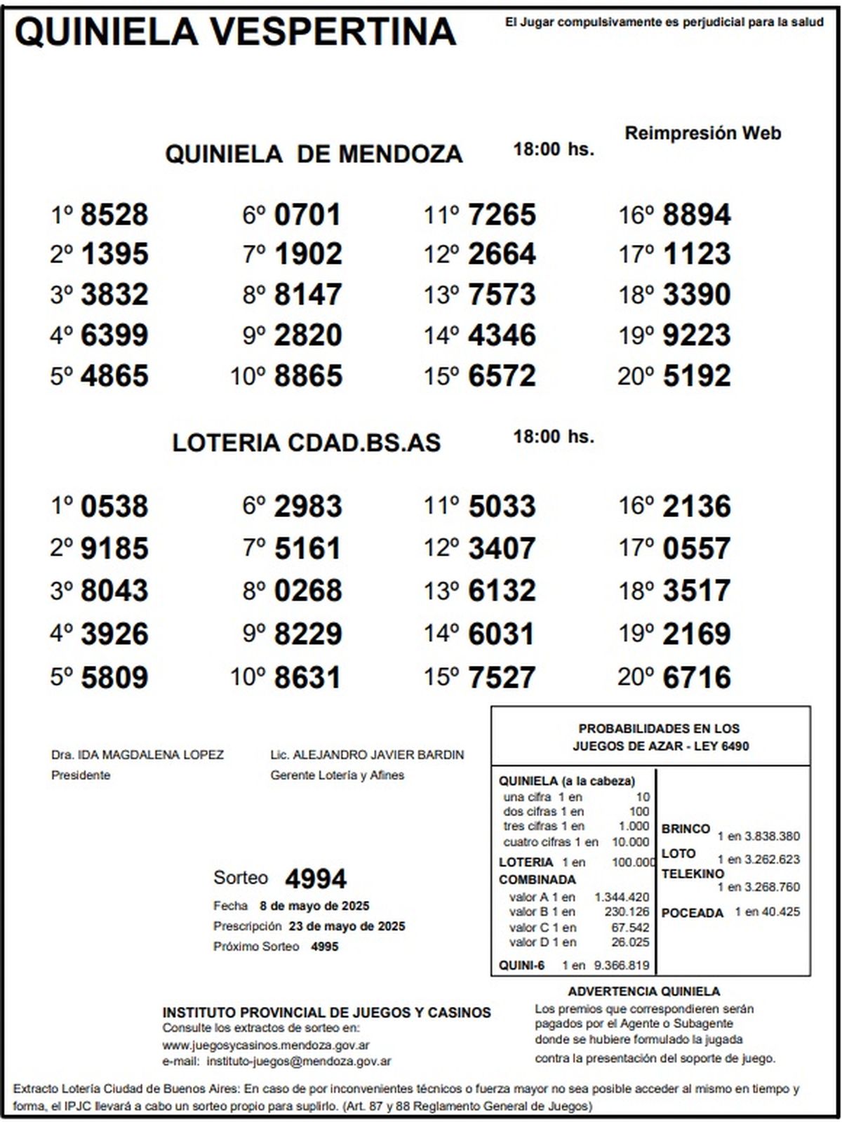 Resultados Quiniela de Mendoza: La Vespertina del 8 de mayo de 2025