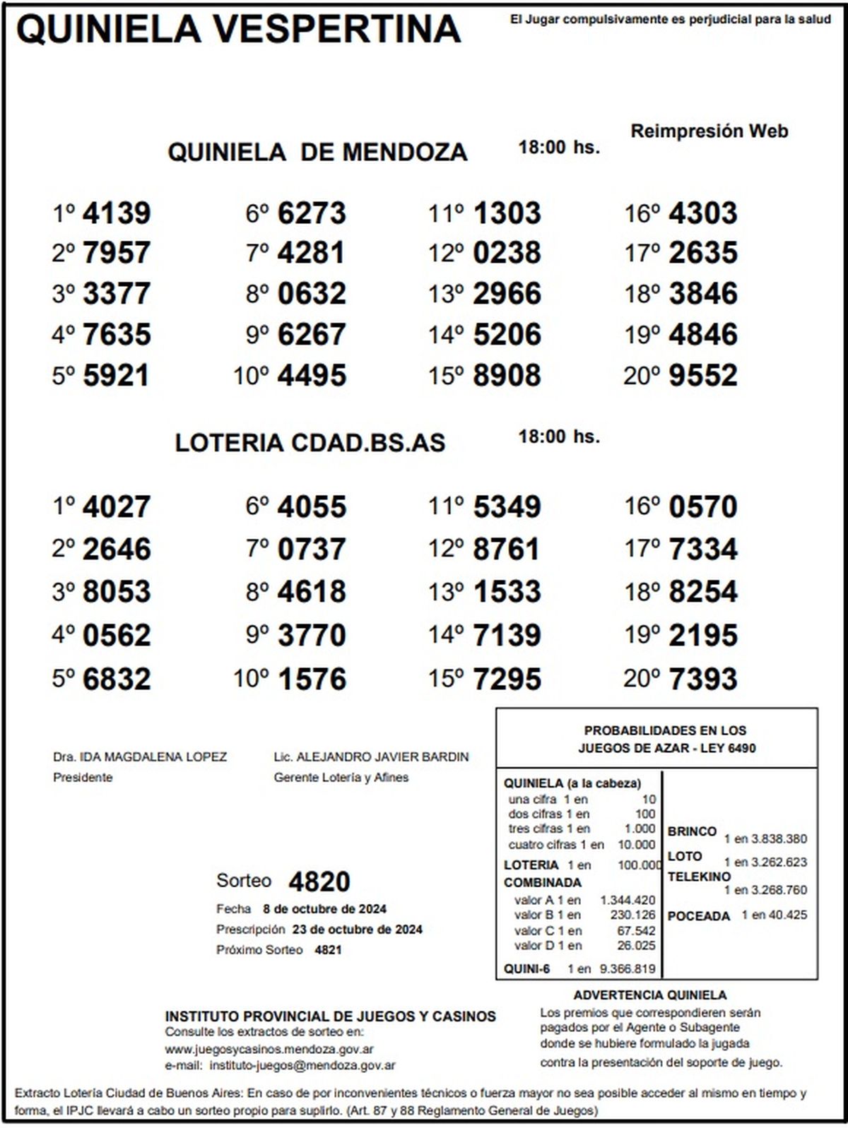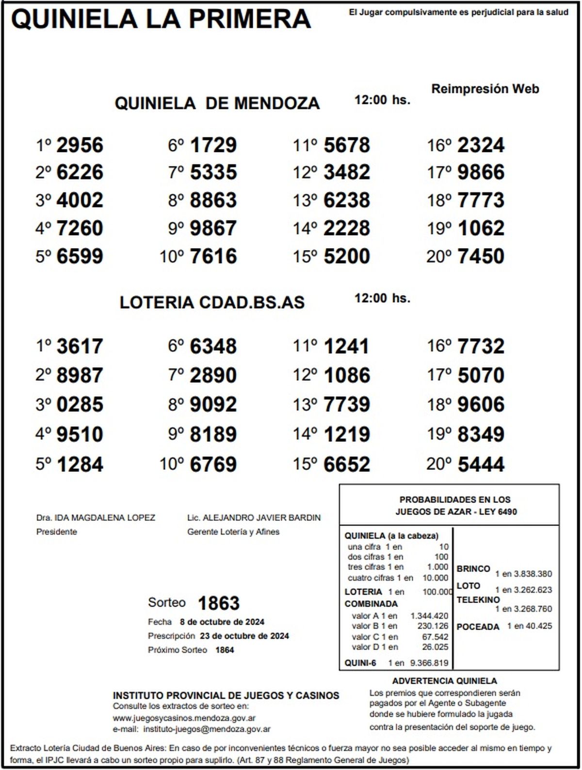 Quiniela de Mendoza: resultados de la Nocturna de hoy, 8 de octubre