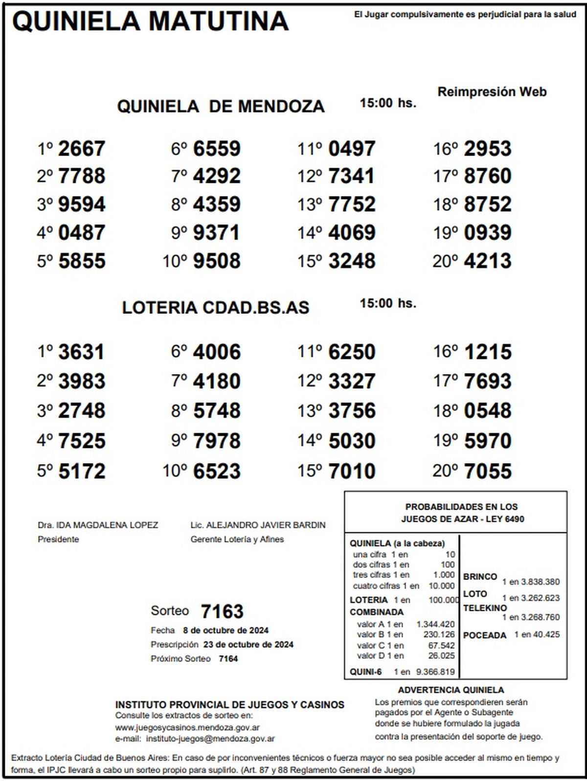 Resultados Quiniela de Mendoza: La Matutina del 8 de octubre 2024