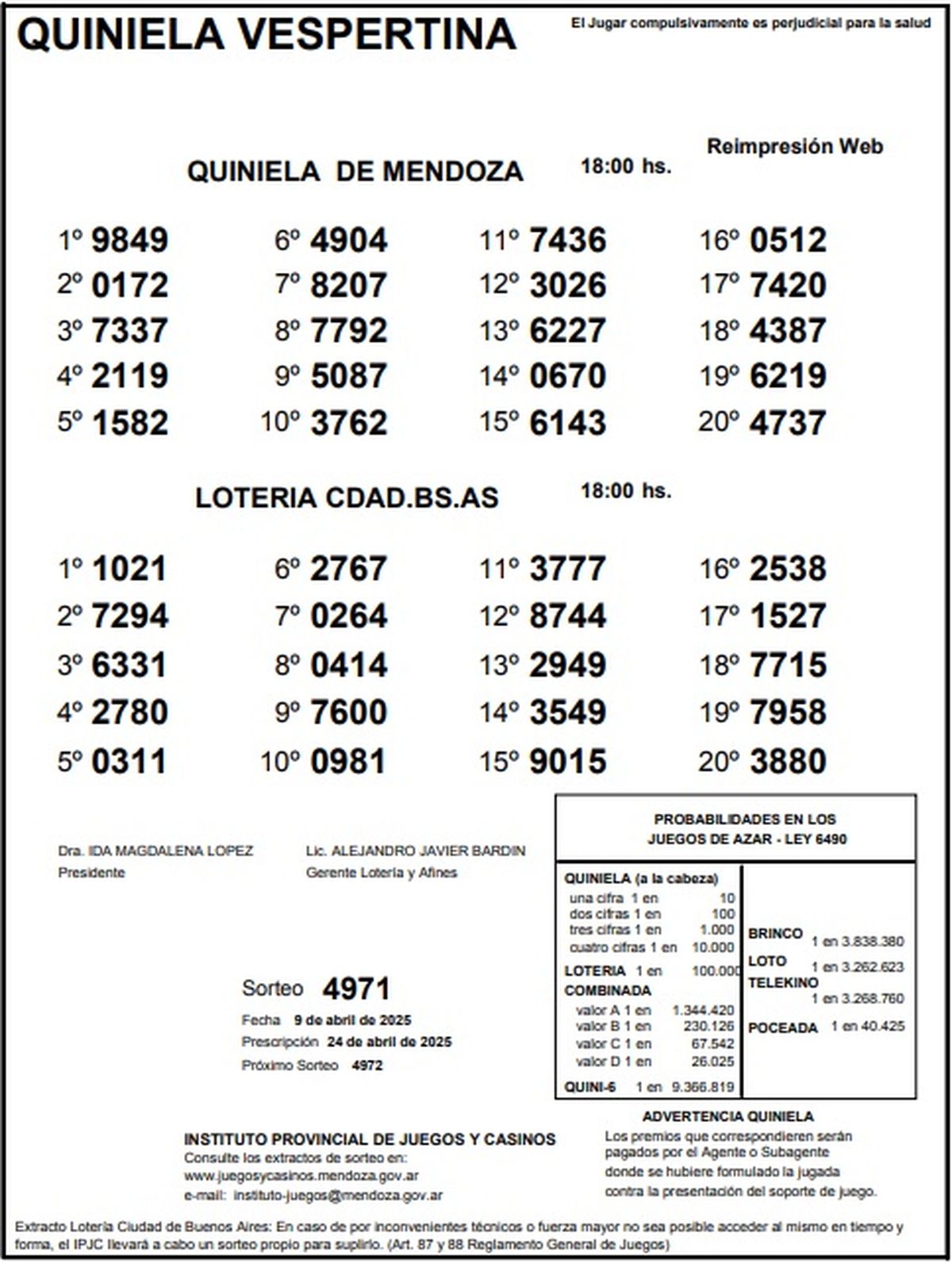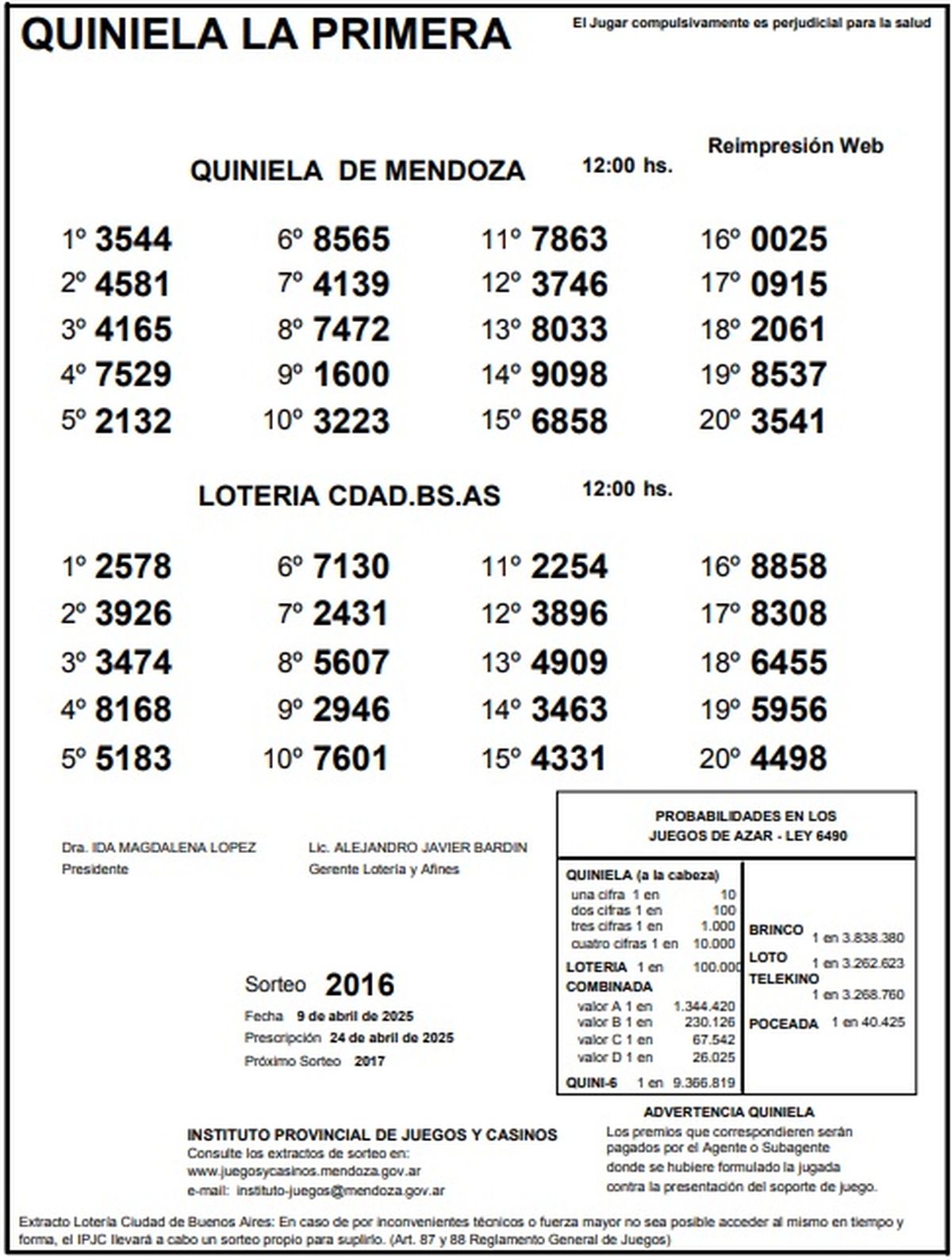 Resultados Quiniela de Mendoza: La Primera del 9 de abril de 2025