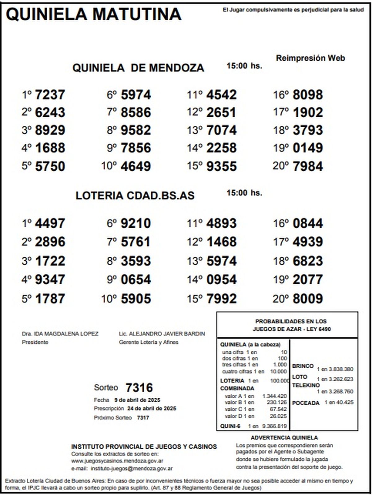 Resultados Quiniela de Mendoza: La Matutina del 9 de abril de 2025