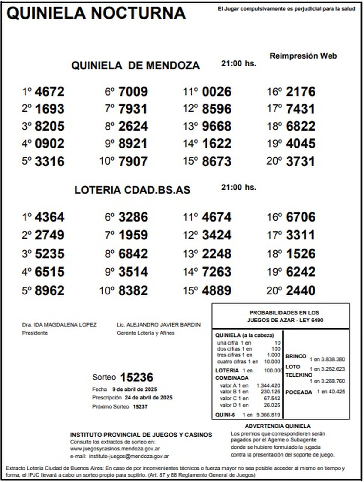 Quiniela de Mendoza: resultados de la Nocturna de hoy, 9 de abril de 2025