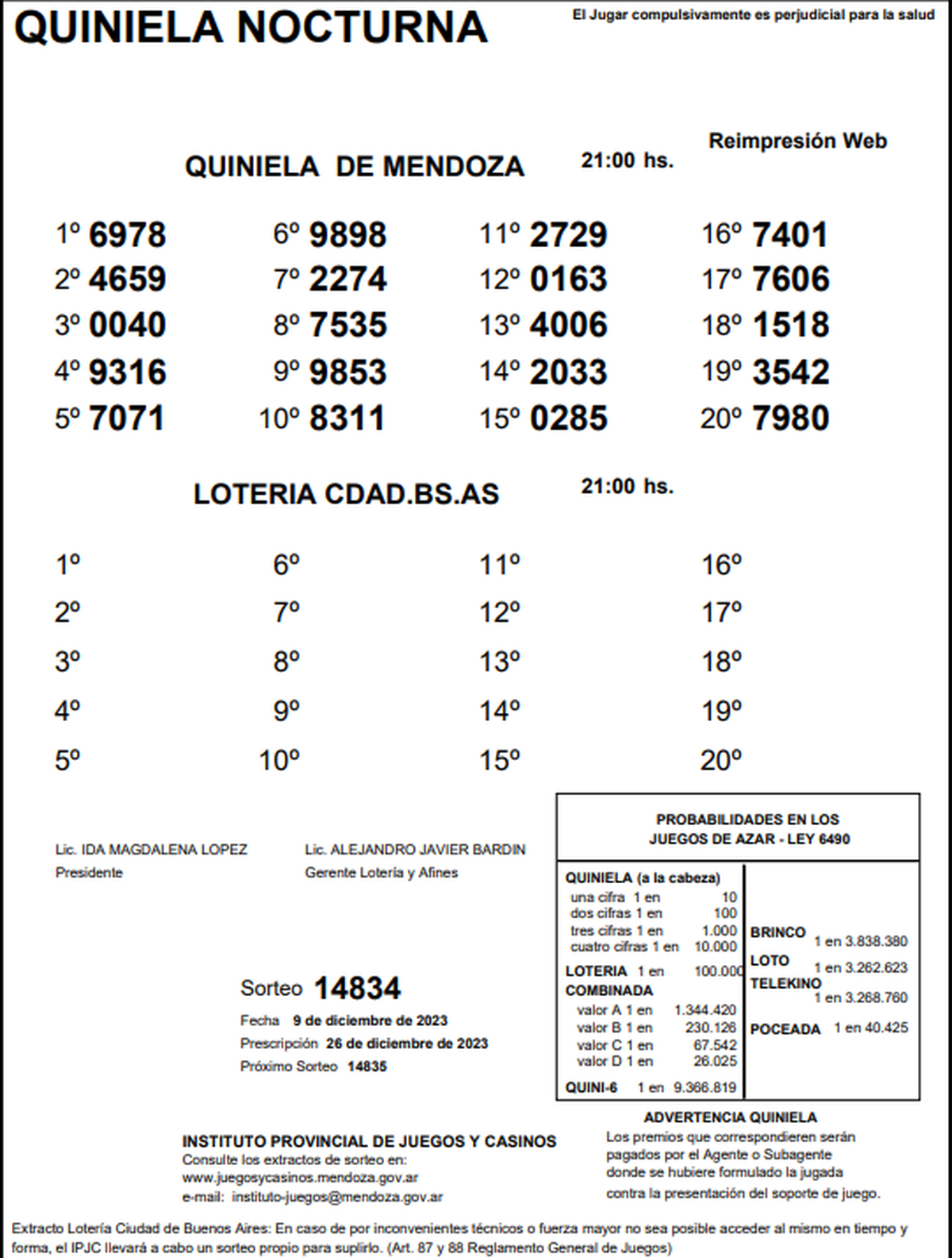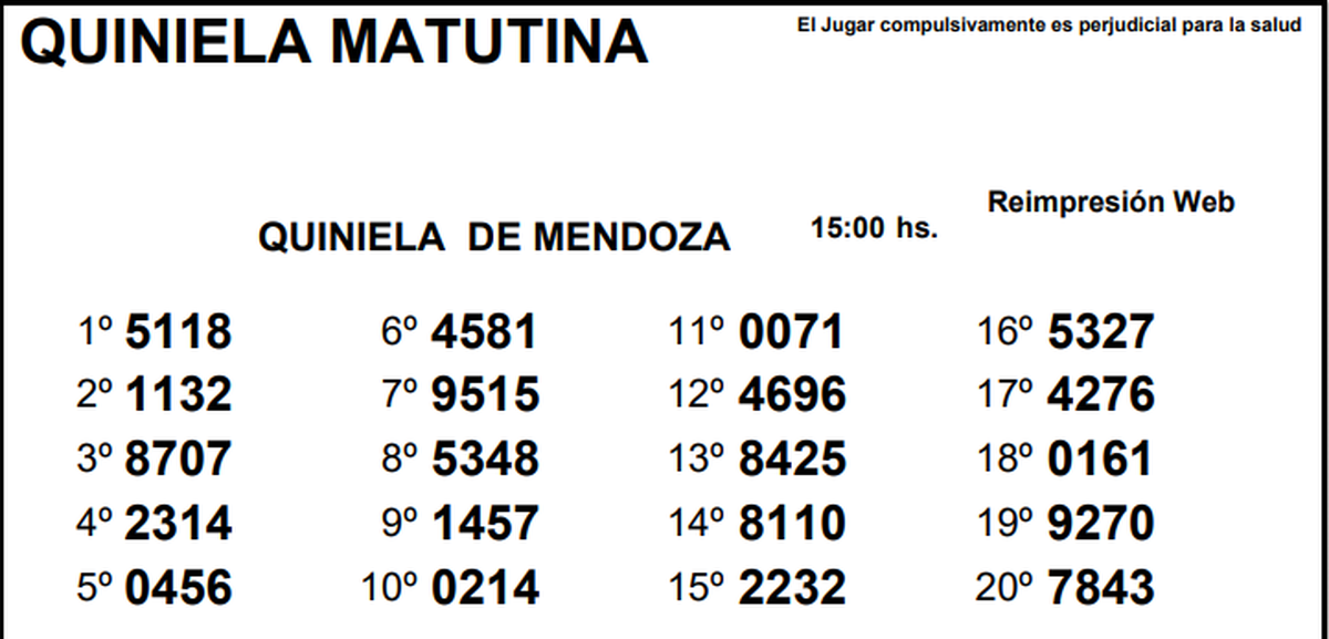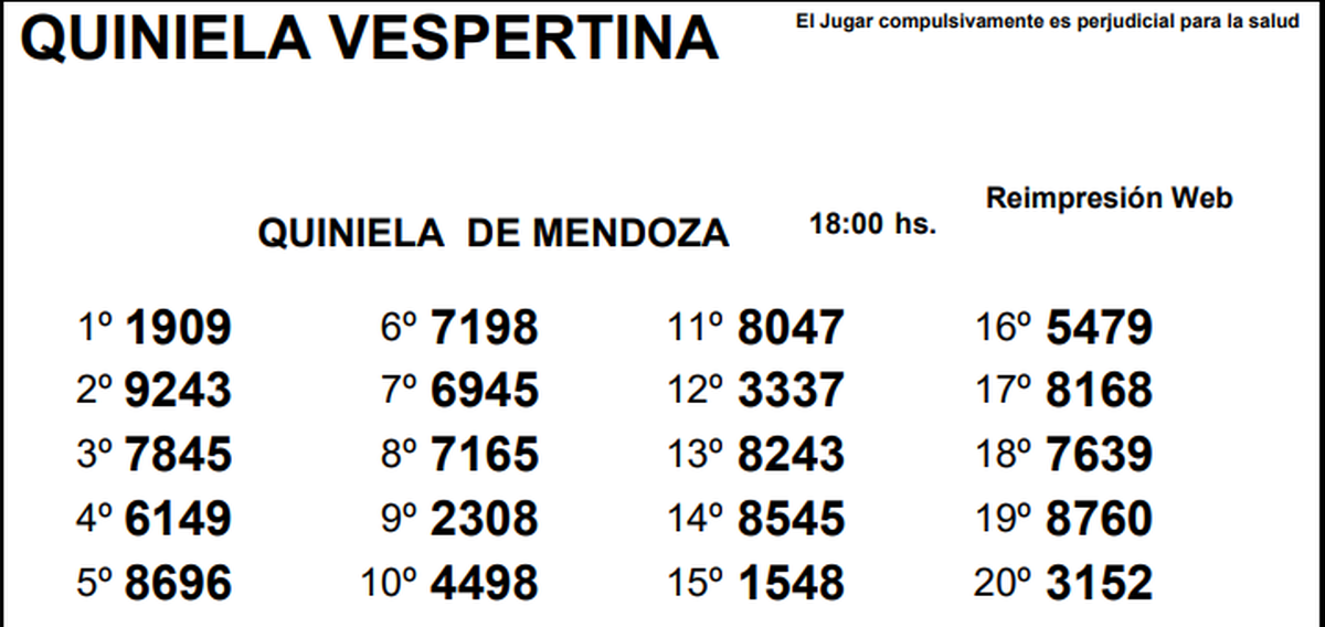 Quiniela de Mendoza: resultados de la Nocturna de hoy, 9 de diciembre