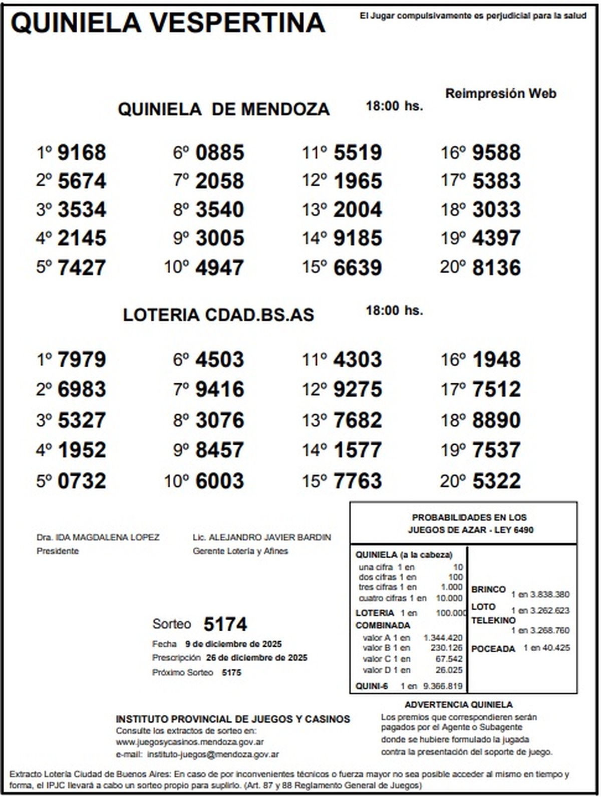 Resultados Quiniela de Mendoza: La Vespertina del 9 de diciembre de 2025