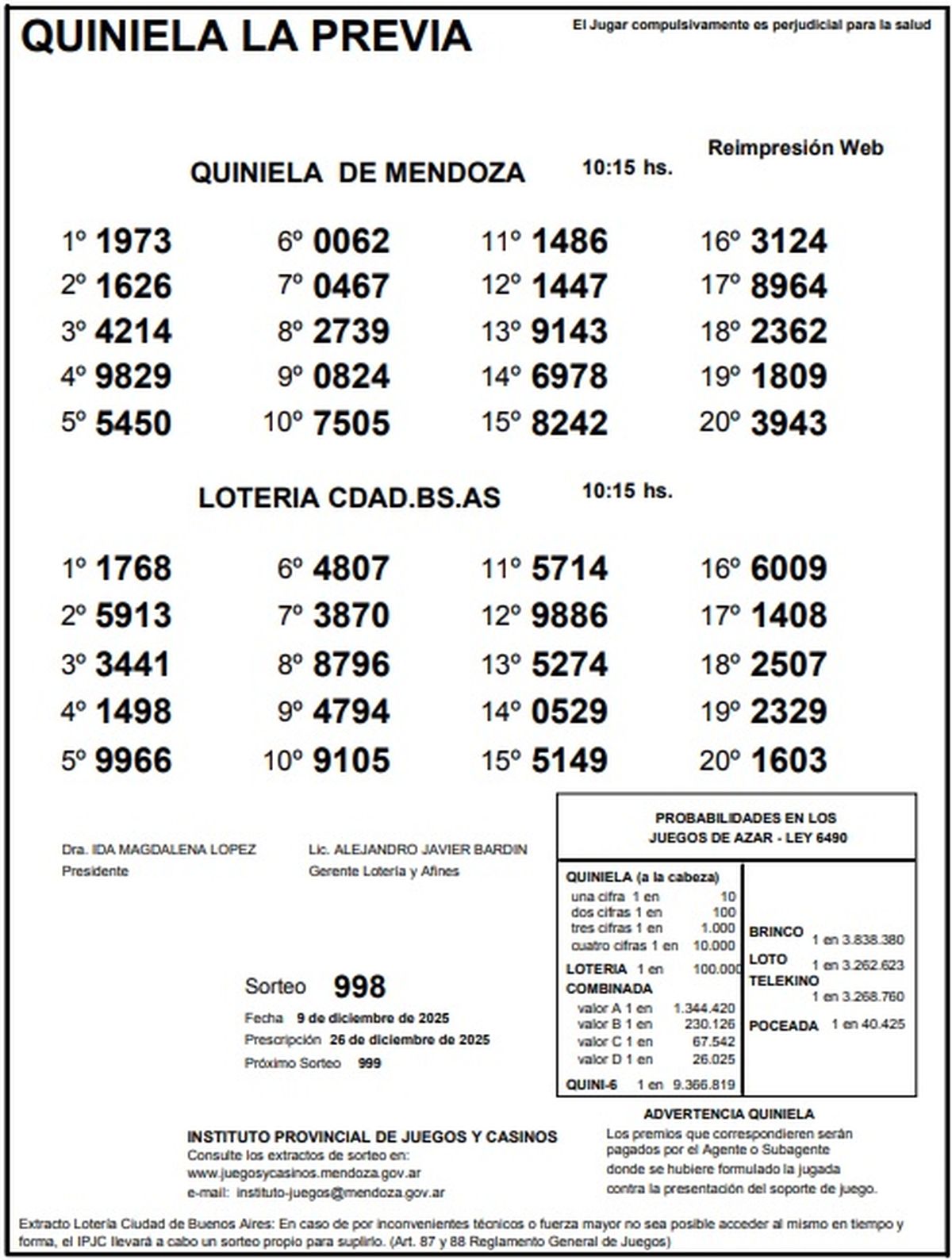 Resultados Quiniela de Mendoza: La Previa del 9 de diciembre de 2025