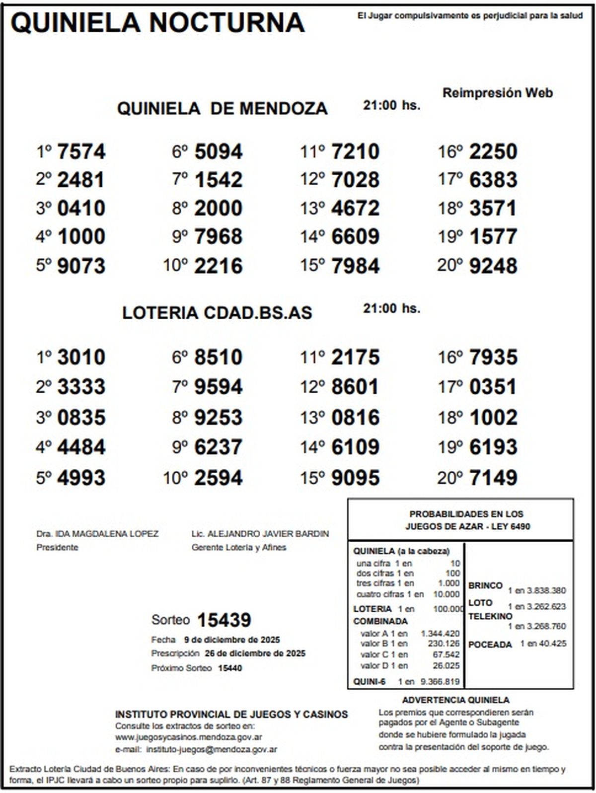Quiniela de Mendoza: resultados de la Nocturna de hoy, 9 de diciembre de 2025
