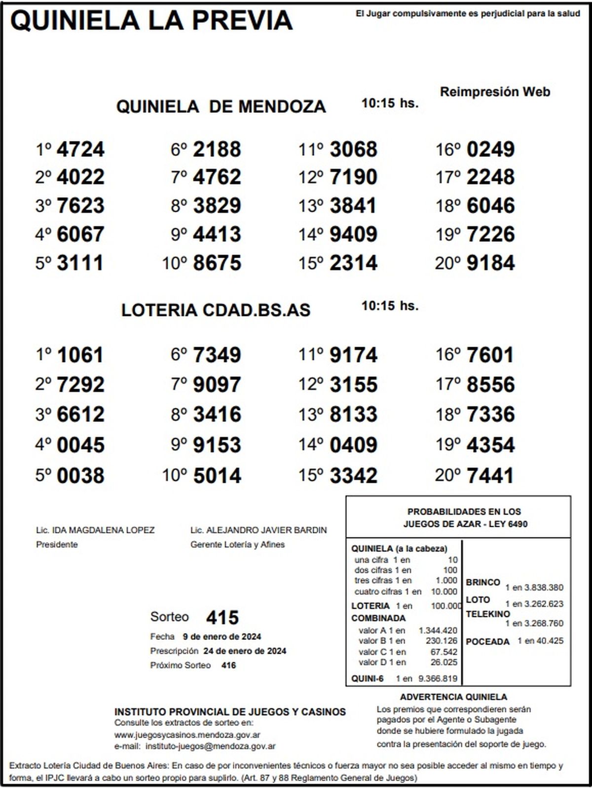 Resultados Quiniela de Mendoza: La Previa del 9 de enero 2024
