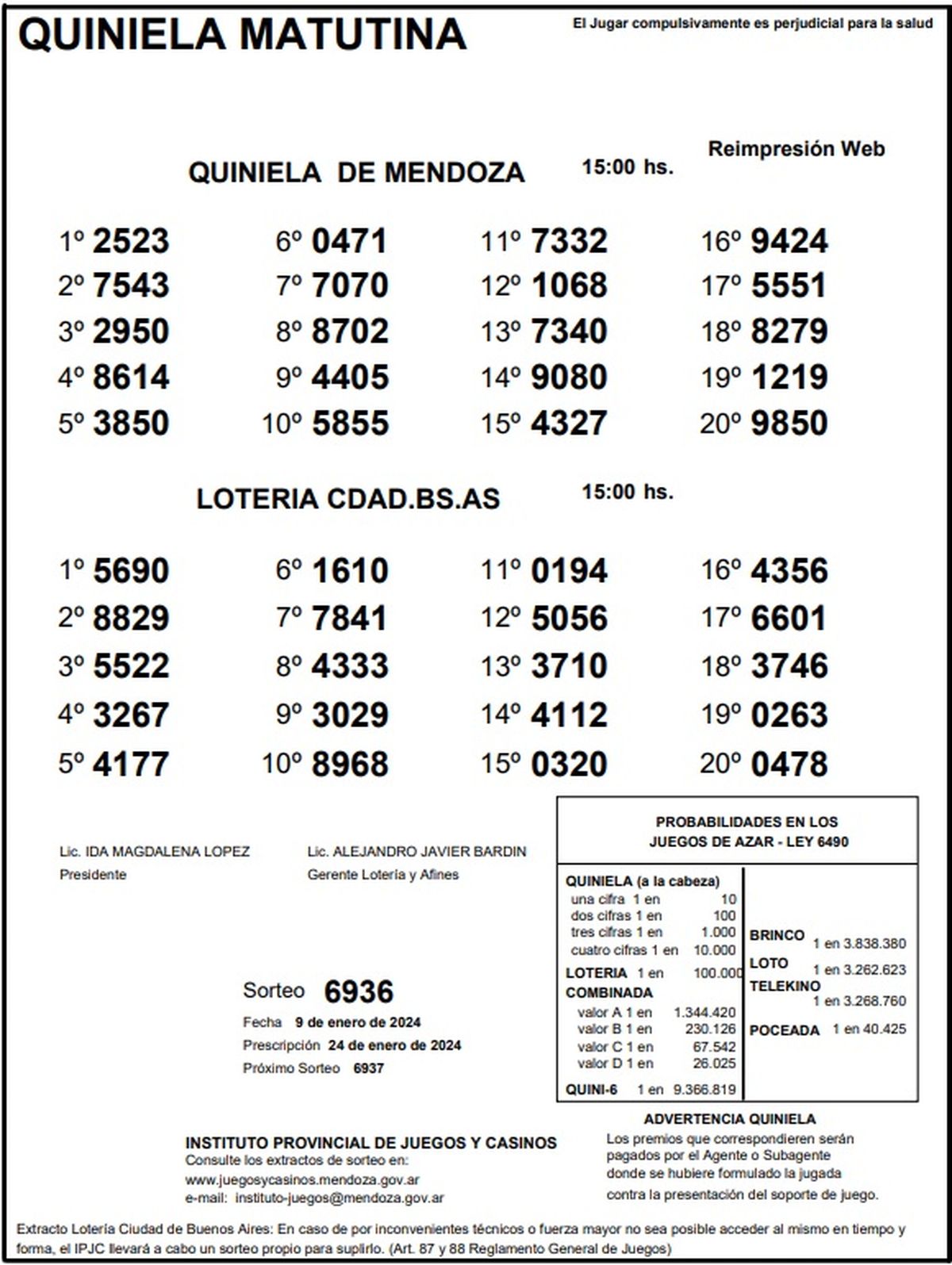 Resultados Quiniela de Mendoza: La Matutina del 9 de enero 2024