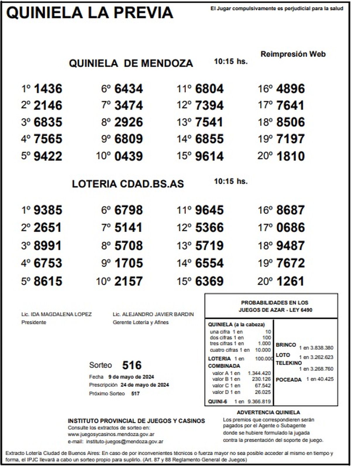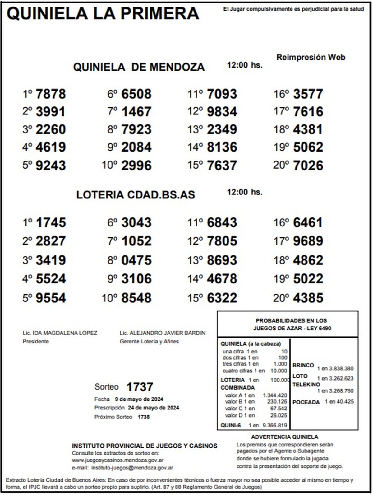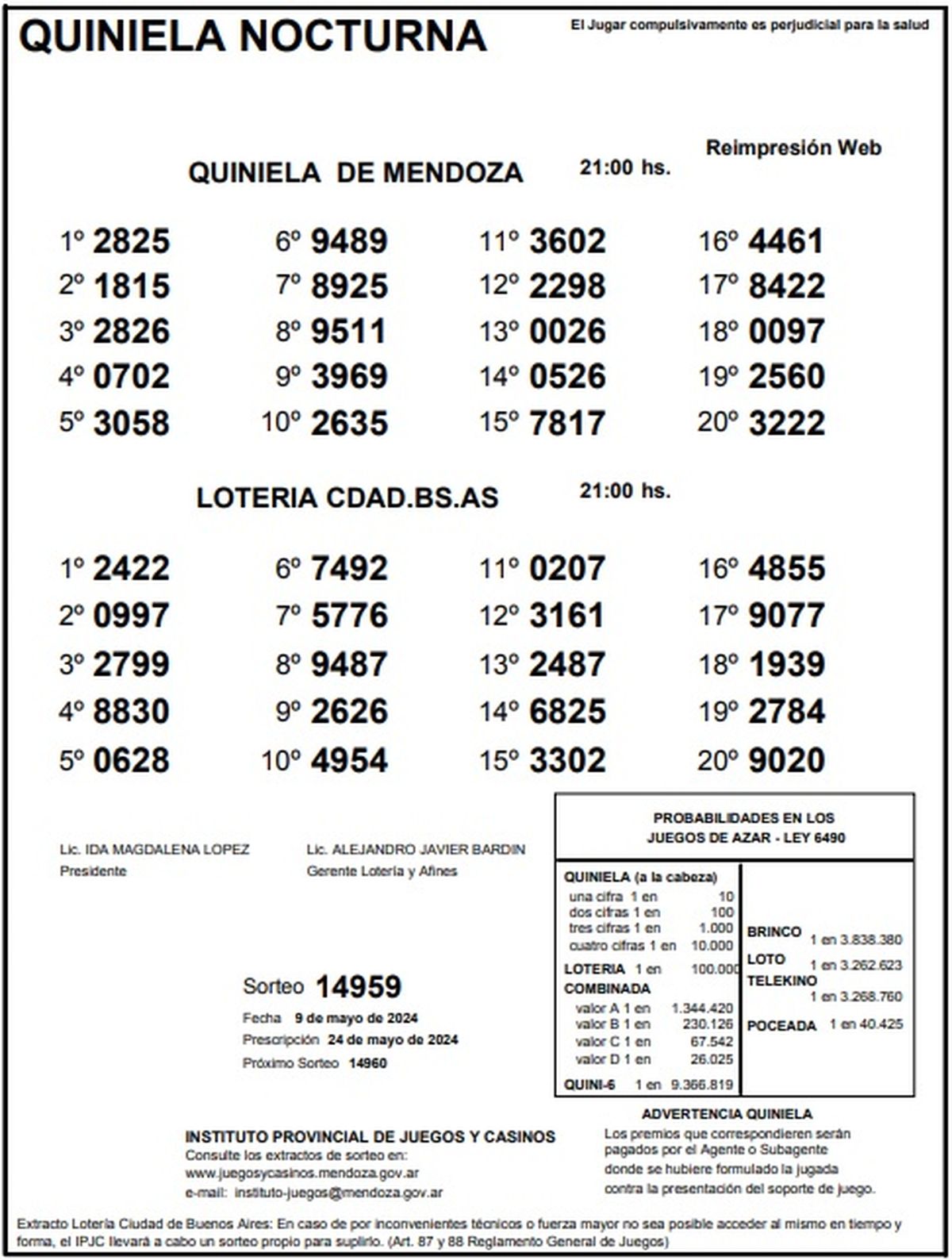Resultados Quiniela de Mendoza: La Previa del 9 de mayo 2024