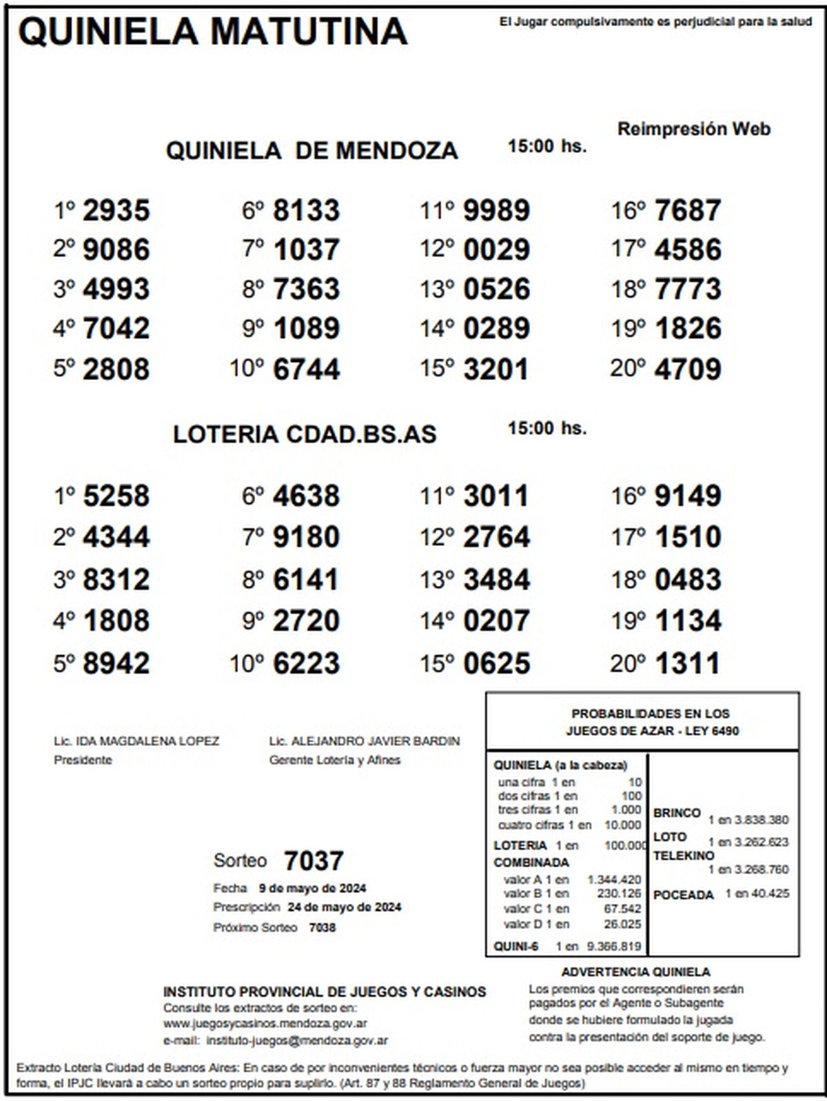 Resultados Quiniela de Mendoza: La Matutina del 9 de mayo 2024
